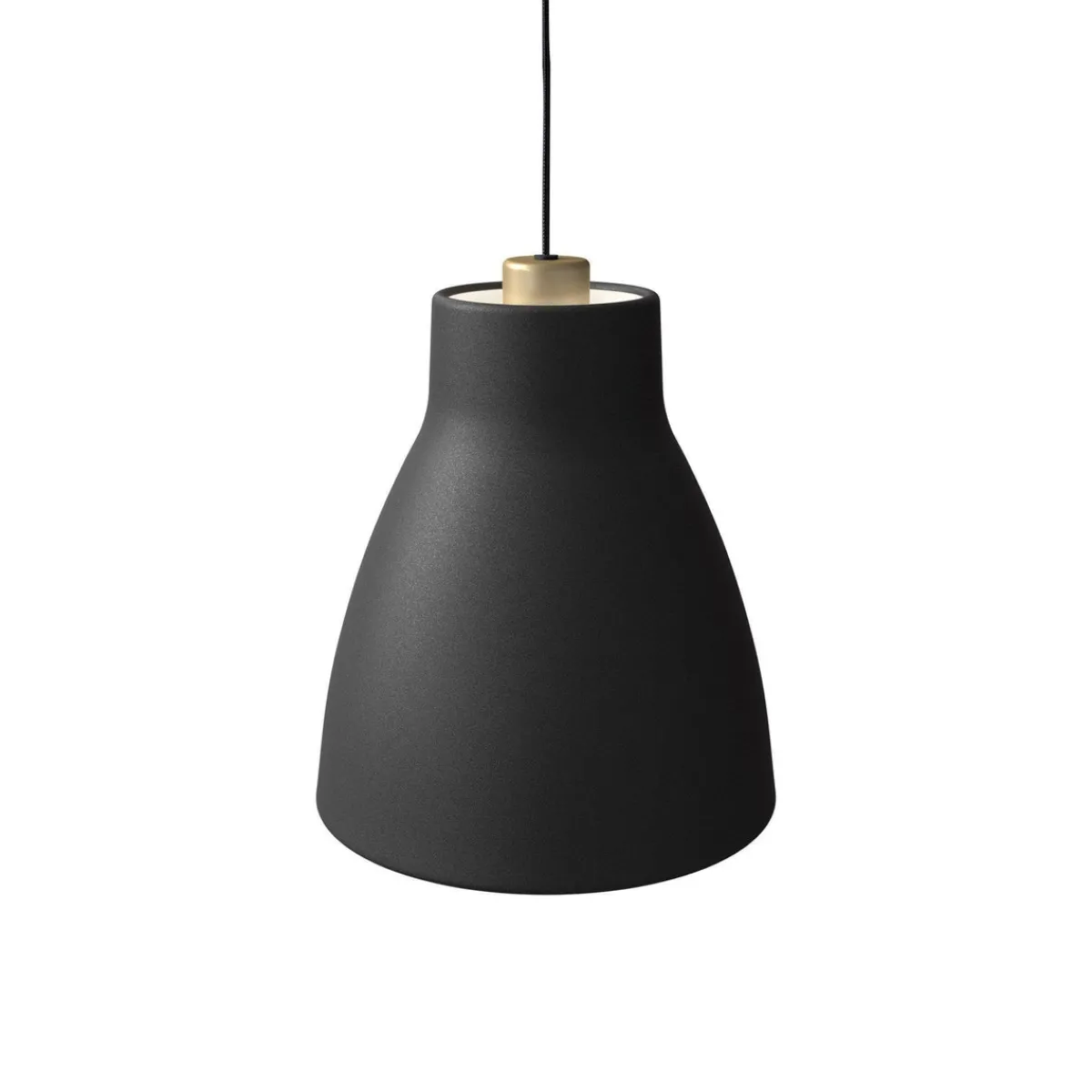 Gong ble designet av Carl&Carl. Deres idé fra begynnelsen var at den skulle ha blitt støpt i betong, men etter hvert som produksjonen vår fokuserer på metallplater, valgte vi å fullføre skjermen med en tungt rullet kant både opp og ned. Dette er for å få en følelse av tykkelse og vekt i armaturen. Dette resulterte i en rolig og tidløs enkel form som passer inn i mange miljøer. Den dype skjermen lar deg velge mellom et bredt spekter av E27 lyskilder. Siden skjermen er åpen på toppen, gir den også et lys oppover, lyset som reflekteres i taket, lyser kontrastene i rommet. Toppen har en aksent farge som er opplyst av opplyset, og dette gir pendelen en ekstra touch.