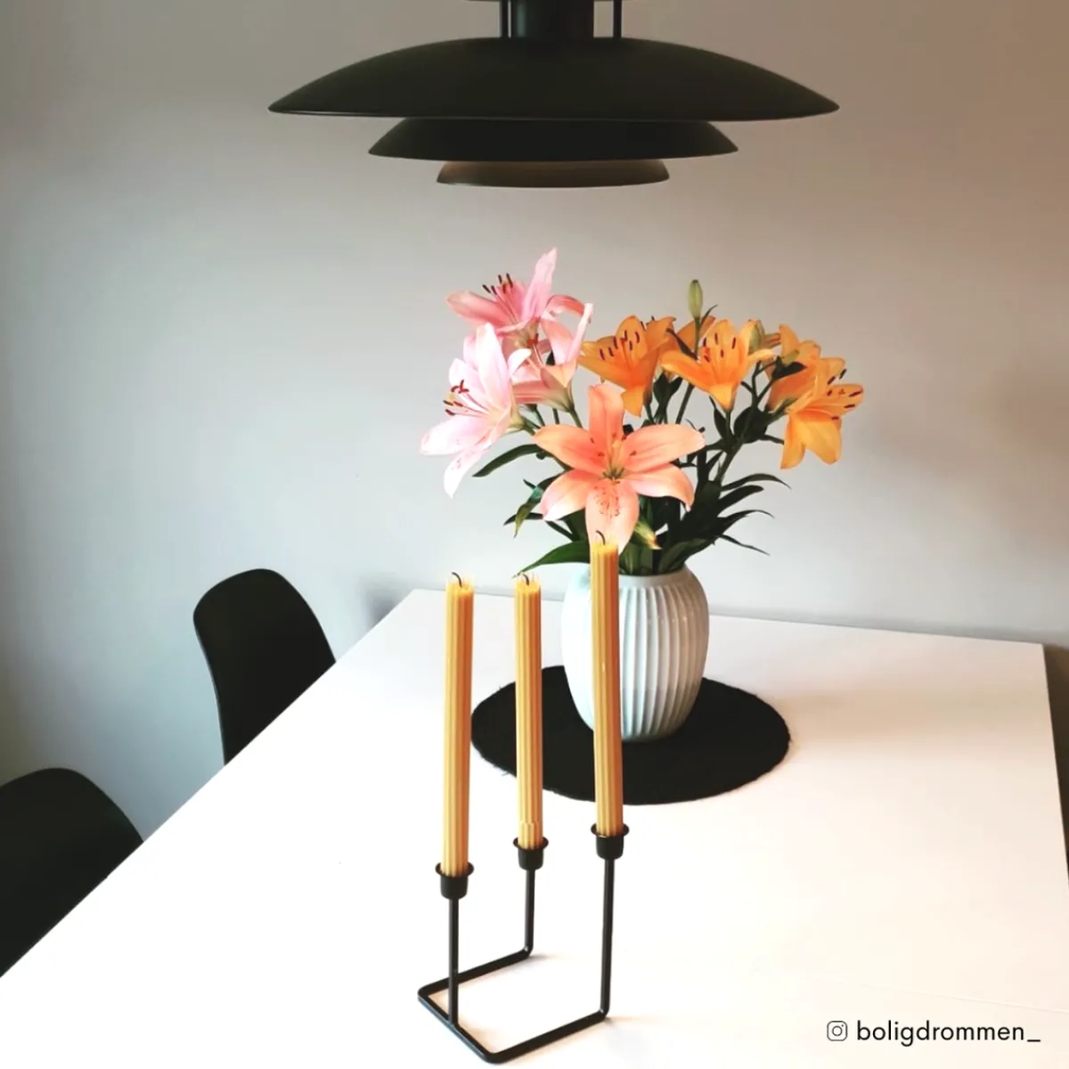 Du behøver 1 stk lyspære med E27-sokkel til lampen. Bruk gjerne en dimbar lyspære og koble lampen til en dimmer, slik at du kan justere lysstyrken ved behov.