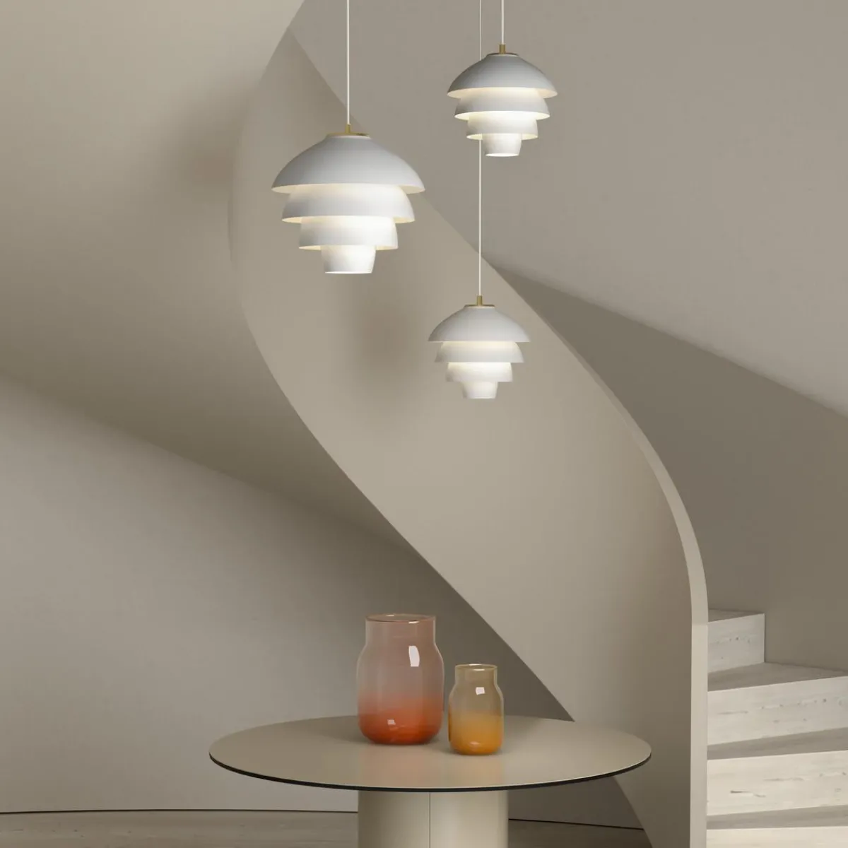 Håndlagde Valencia går inn i en ny æra med sin kombinasjon av matt hvit og massiv messing. Den nøye utvalgte matte hvite fargen sammen med håndpolerte varme messingdetaljer skaper et moderne, men tidløst uttrykk – perfekt tilpasset dagens interiør. Valencia finnes som pendel-, bord- og gulvlampe.