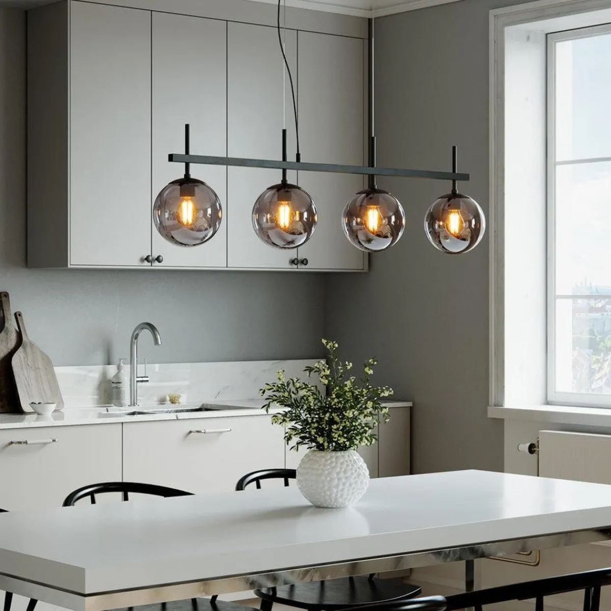 Den kan både heves og senkes, noe som gjør den tilpasset dine behov. Med en maksimal effekt på 4x8W LED og stor sokkel E27, tilbyr Boyle både effektivitet og estetikk.