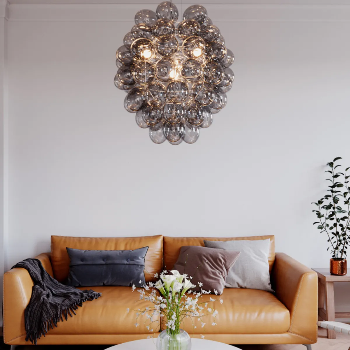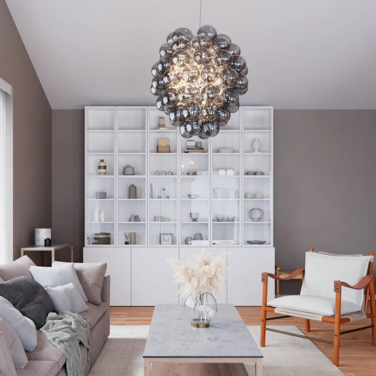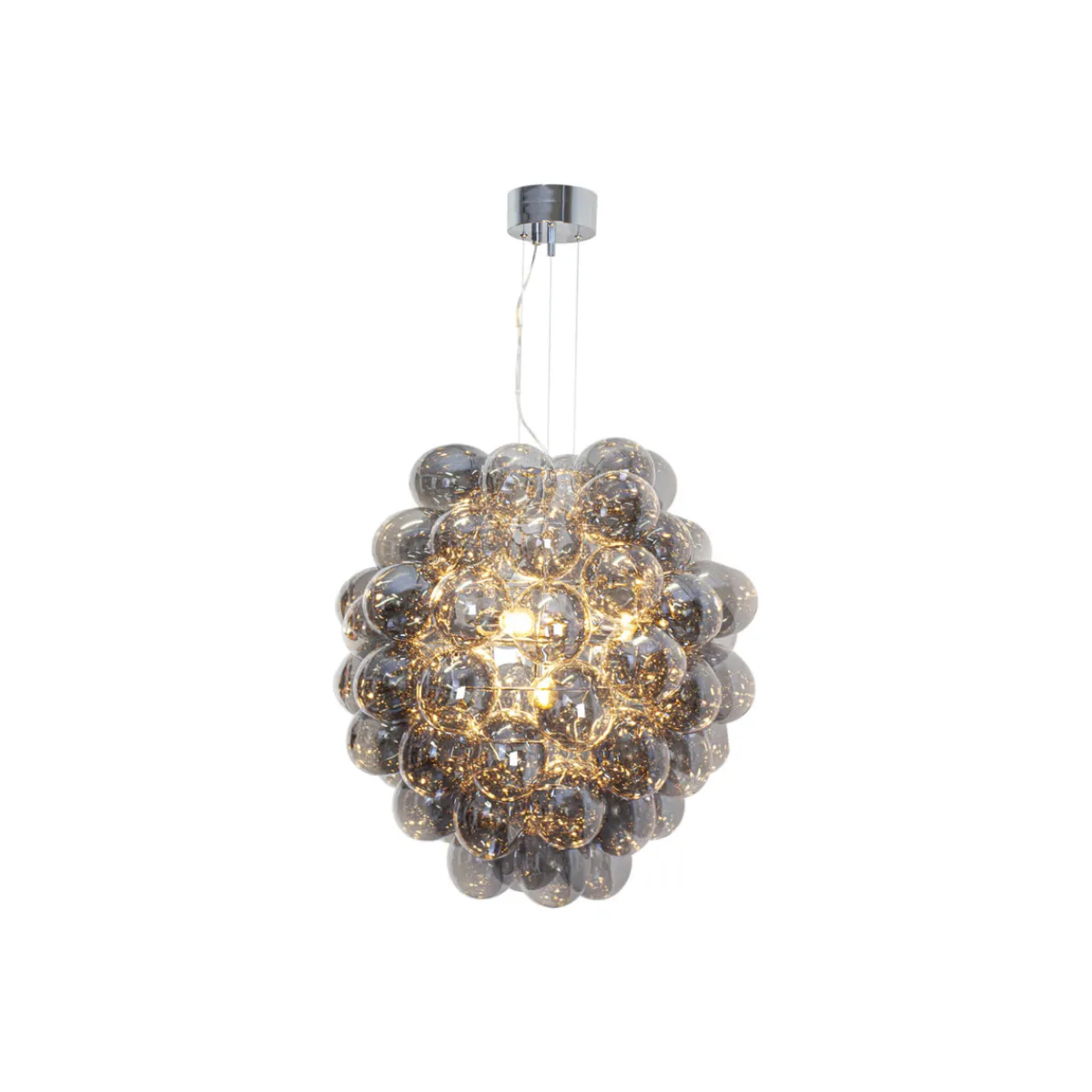Med sine imponerende 60 glasskuler sprer taklampen Deluxe et jevnt og behagelig lys i rommet. De blanke kulene reflekterer lyset og skaper en vakker og effektiv belysning. Enten du ønsker å skape en stemningsfull atmosfære i stuen eller legge til et snev av glamour til spisestuen, vil Deluxe-pendellampen garantert bli en snakkis og et statement i hjemmet ditt.