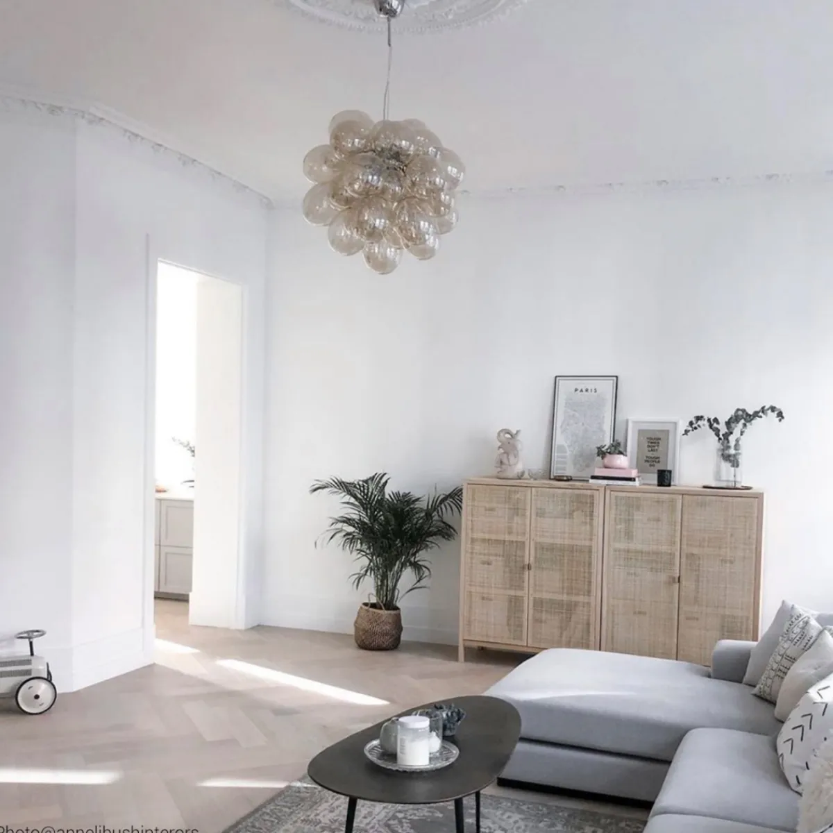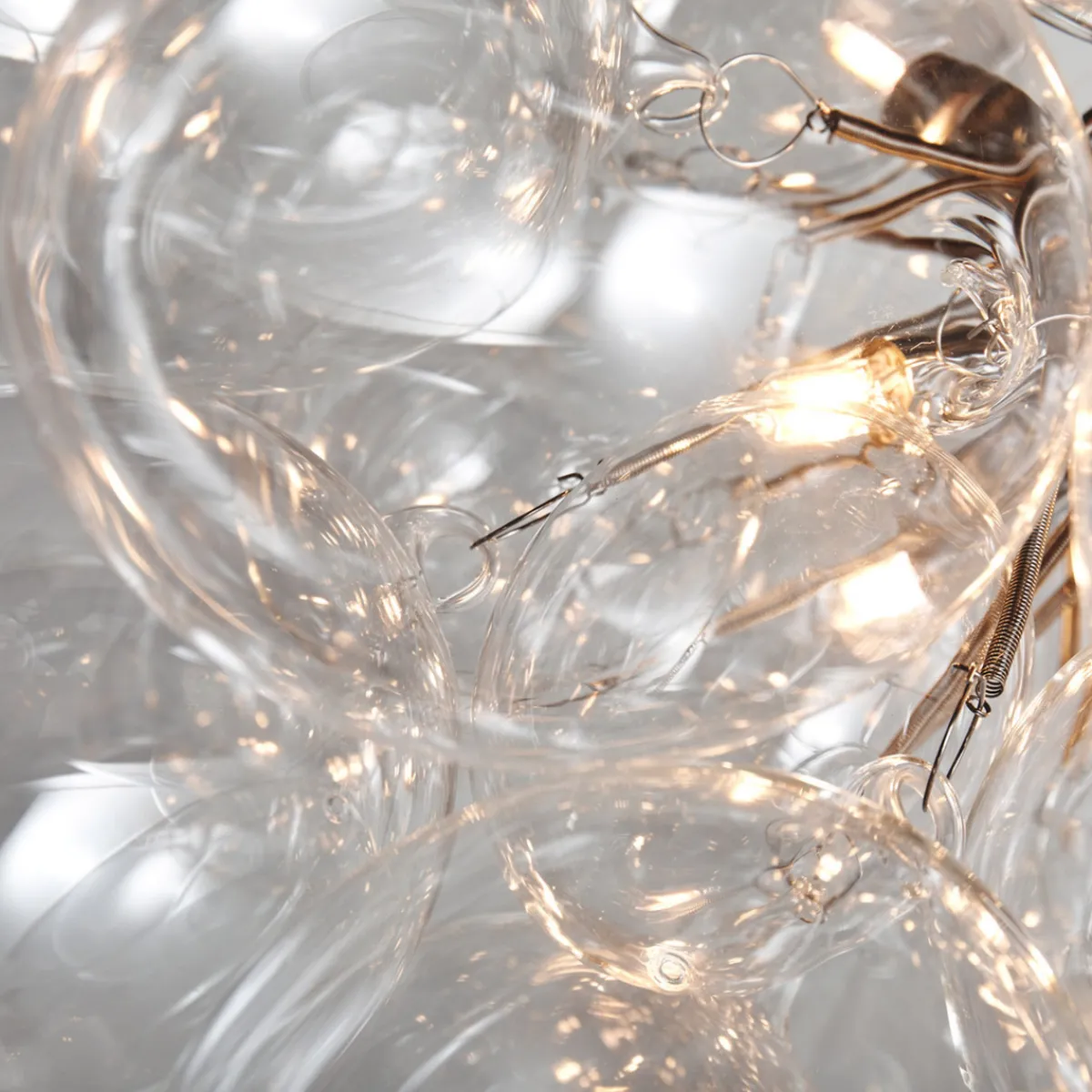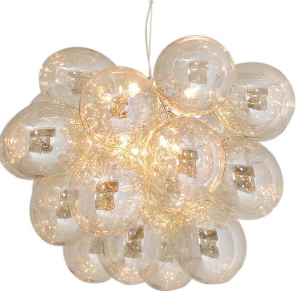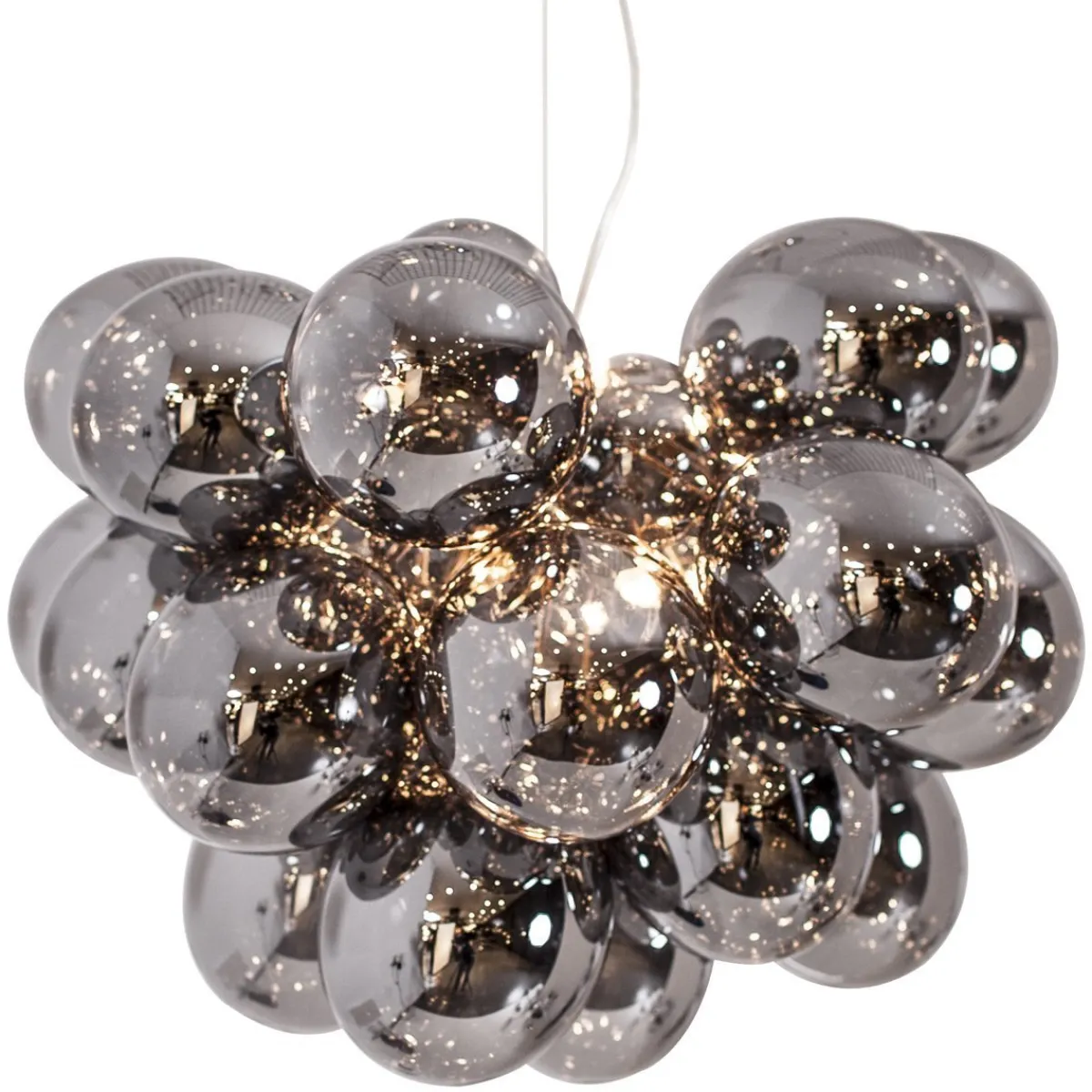 Vår populære taklampe Gross har fått en større slektning! Gross Grande har en diameter på ca. 62 centimeter og er en fantastisk, eksklusiv taklampe i glass bestående av sarte, munnblåste glasskuler som danner en lampe som ligner en sky. Glasskulene teller 32 stykker og består av både 24 større og 8 mindre kuler. Gross Grande krever 8 lyskilder med sokkel G9. Taklampen er hev- og senkbar og finnes i fargene ravgult, røykgrått og klart glass. Denne taklampen skaper virkelig et utropstegn i hjemmet ditt og fungerer like godt på et soverom som over kjøkkenbordet eller i en romslig entré.