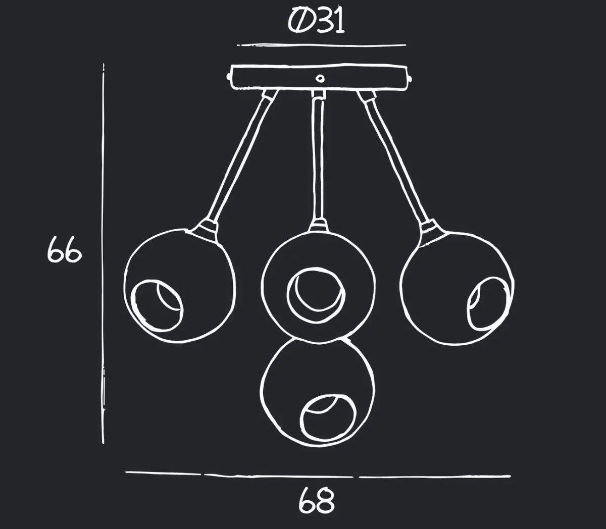 Ballroom Molecule lysekronen fra Design By Us er deres tolkning av en moderne og funksjonell lysekrone. Dette er kronjuvelen til Ballroom-serien, i form av en femarmet lysekrone som skiller seg ut hvor som helst. Ballroom Molecule taklampe er en dekorativ lampe med munnblåst- og håndmalt glass. Den fine kanten i glasset er håndmalt. Ballroom har et elegant uttrykk og skaper en behagelig belysning. Taklampen er perfekt å ha hengende i gangen, stuen, soverommet eller i ett rom hvor du ønsker vakker belysning. Vær oppmerksom på at lampen selges uten lyspærer. Fem lyspærer kreves for denne lampen.