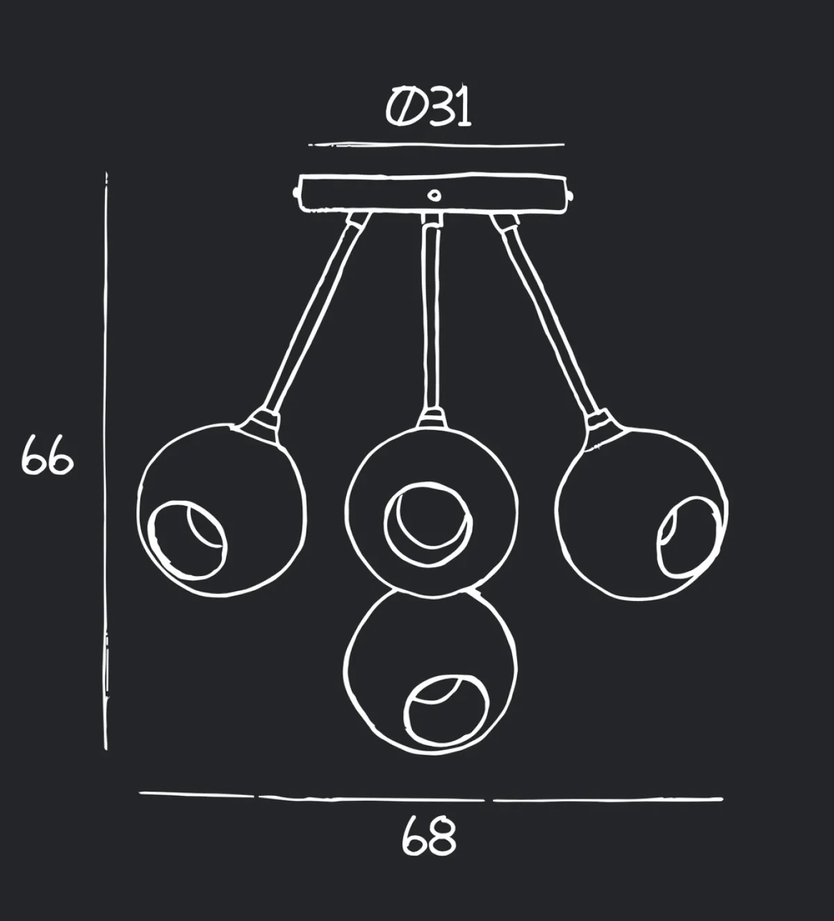 Ballroom Molecule lysekronen fra Design By Us er deres tolkning av en moderne og funksjonell lysekrone. Dette er kronjuvelen til Ballroom-serien, i form av en femarmet lysekrone som skiller seg ut hvor som helst. Ballroom Molecule taklampe er en dekorativ lampe med munnblåst- og håndmalt glass. Den fine kanten i glasset er håndmalt. Ballroom har et elegant uttrykk og skaper en behagelig belysning. Taklampen er perfekt å ha hengende i gangen, stuen, soverommet eller i ett rom hvor du ønsker vakker belysning. Vær oppmerksom på at lampen selges uten lyspærer. Fem lyspærer kreves for denne lampen.