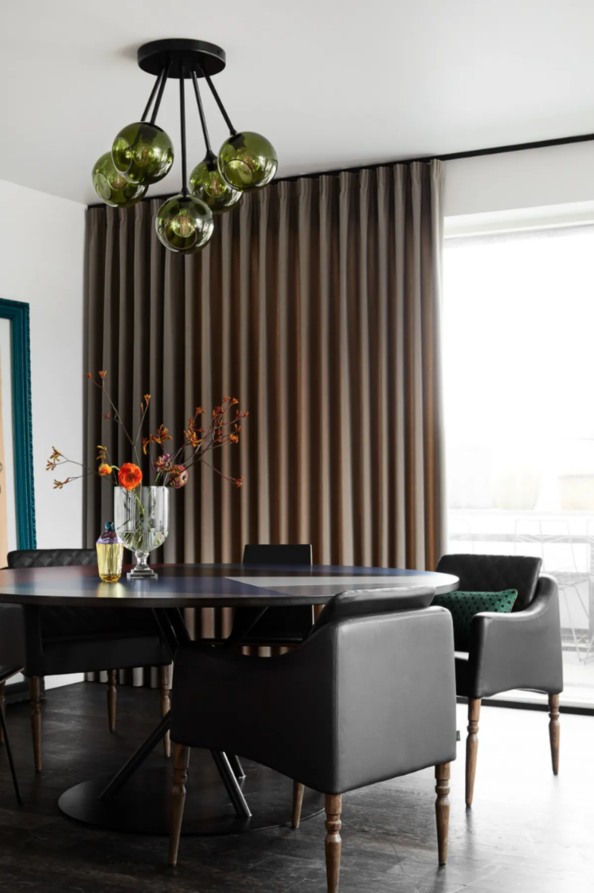 Ballroom Molecule lysekronen fra Design By Us er deres tolkning av en moderne og funksjonell lysekrone. Dette er kronjuvelen til Ballroom-serien, i form av en femarmet lysekrone som skiller seg ut hvor som helst. Ballroom Molecule taklampe er en dekorativ lampe med munnblåst- og håndmalt glass. Den fine kanten i glasset er håndmalt. Ballroom har et elegant uttrykk og skaper en behagelig belysning. Taklampen er perfekt å ha hengende i gangen, stuen, soverommet eller i ett rom hvor du ønsker vakker belysning. Vær oppmerksom på at lampen selges uten lyspærer. Fem lyspærer kreves for denne lampen.