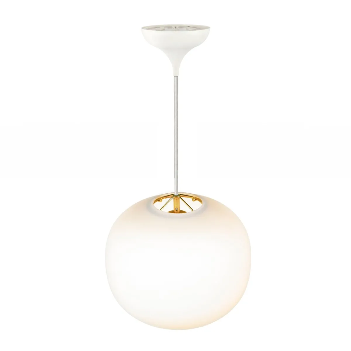 Navone er designet av det danske designstudioet Mavro/Lefevre. Den generelle formen på skjermen er myk og rund, men den svært subtile buede bunnen tilfører en ny interessant dimensjon som forvandler lampen til mer enn bare en kule. Messingdetaljene tilfører et moderne preg, og understreker lampens avbrutte lyshet.