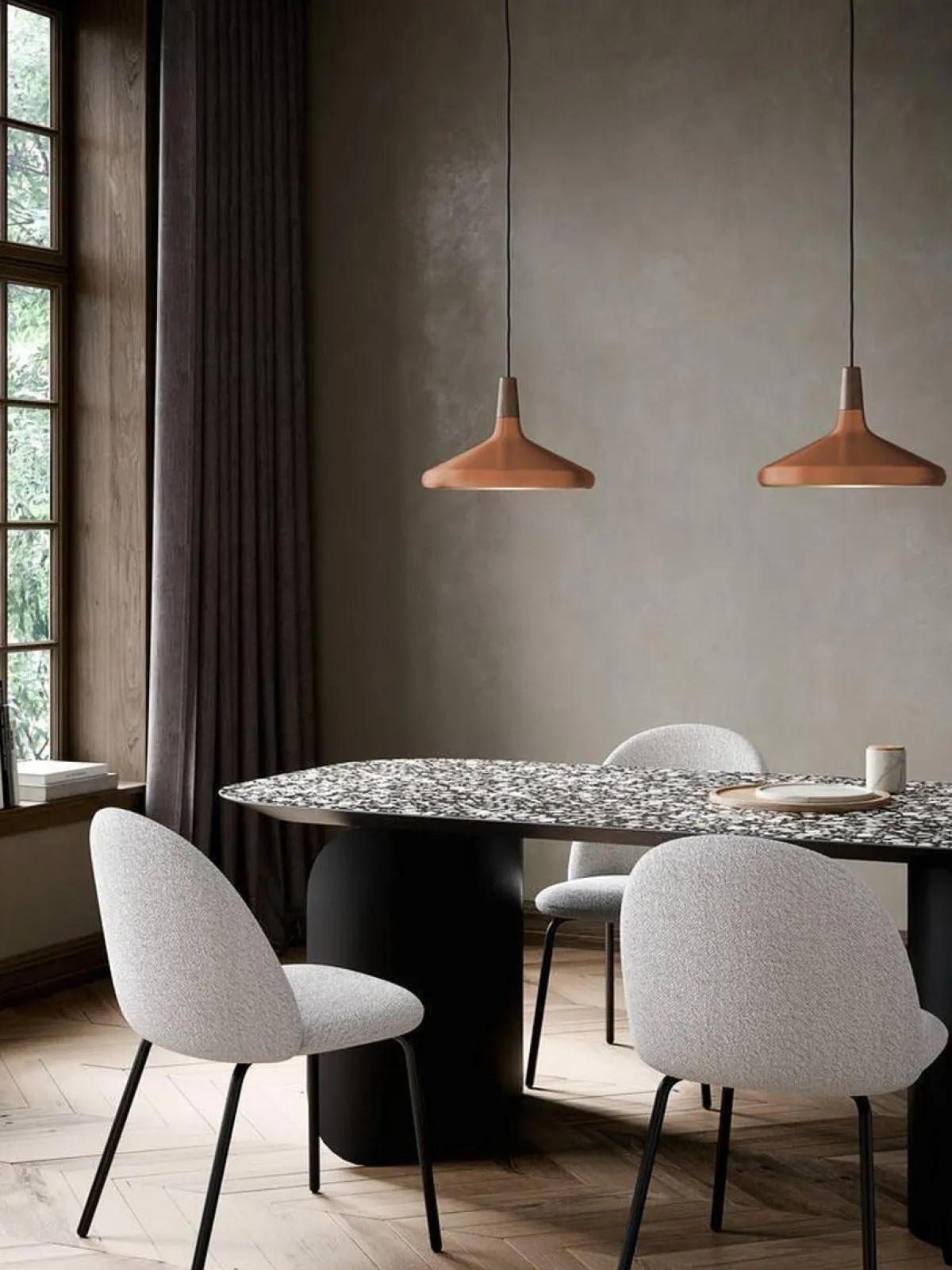 Nori er en familie som står sammen uten å være uatskillelig. Linjer, figurer og flater sikrer harmoni, og en umiskjennelig letthet skinner gjennom i alle designvarianter. Designet er både rankt og raffinert med sin eksklusive FSC-sertifiserte tretopp i oljet valnøtt, som er et av Nori-seriens kjennemerker. Den er enkel å plassere sammen med andre interiørelementer og flott å blande i ulike farger og størrelser. Duoen Bjørn+Balle står bak designet
