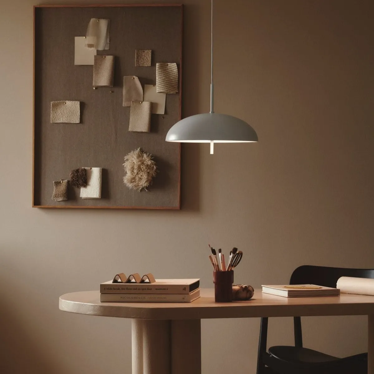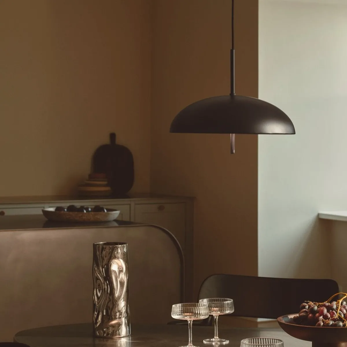 Versale-serien fra Anker Studio er selve symbolet på skandinavisk minimalisme skåret helt til kjernen. En perfekt rund skjerm som gir et ensartet lysfelt kun brutt av opphenget som går gjennom skjermen. Pendellampen er ideell til å skape en innbydende stemning ved spisebordet med sitt behagelige lys som ikke blender.