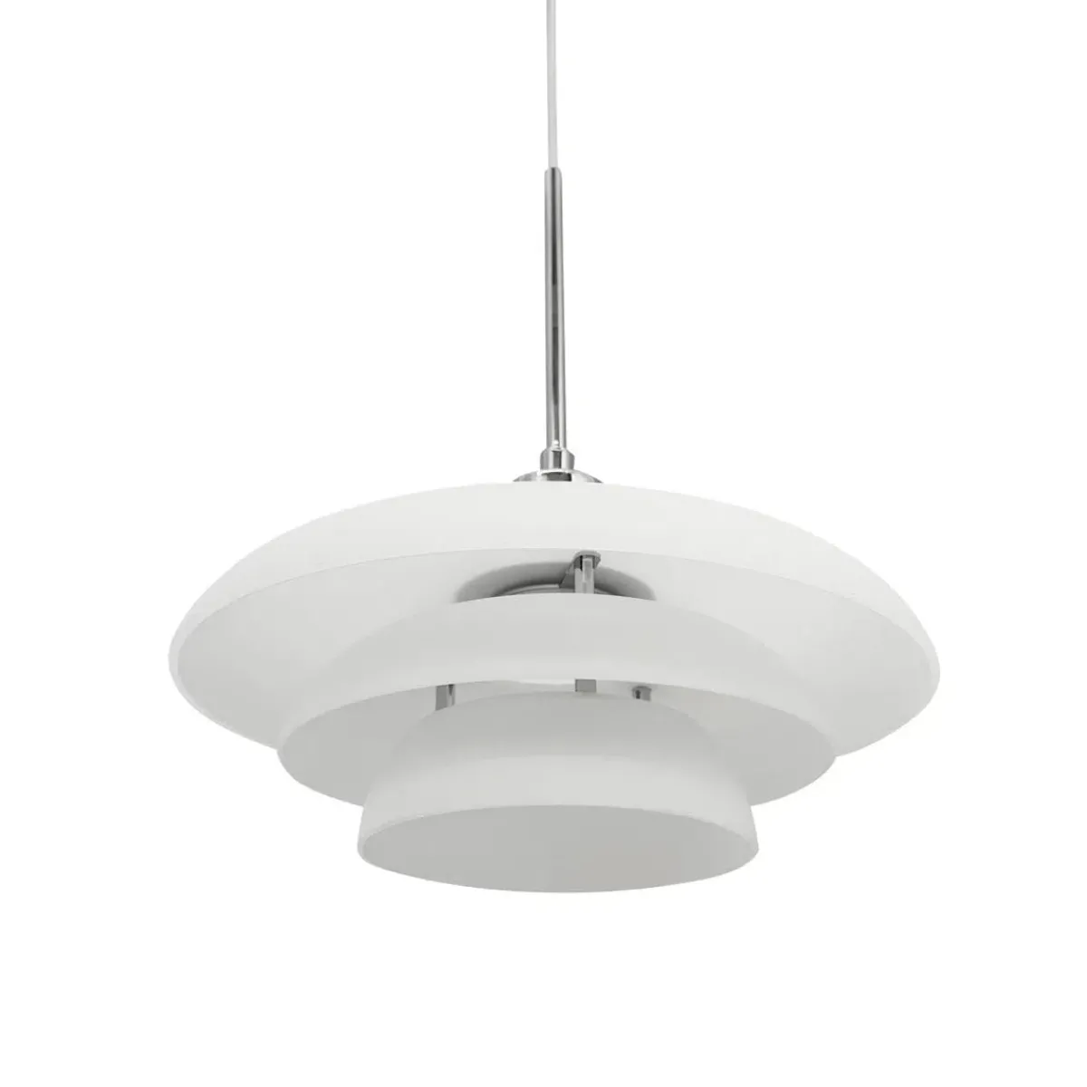 Med sin opalglass-finish og elegante kromdetaljer gir AVA Pendel et mykt og behagelig lys som skaper en koselig atmosfære. Det minimalistiske designet og de rene linjene gjør den ideell over spisebordet, på kjøkkenet eller i stuen.
