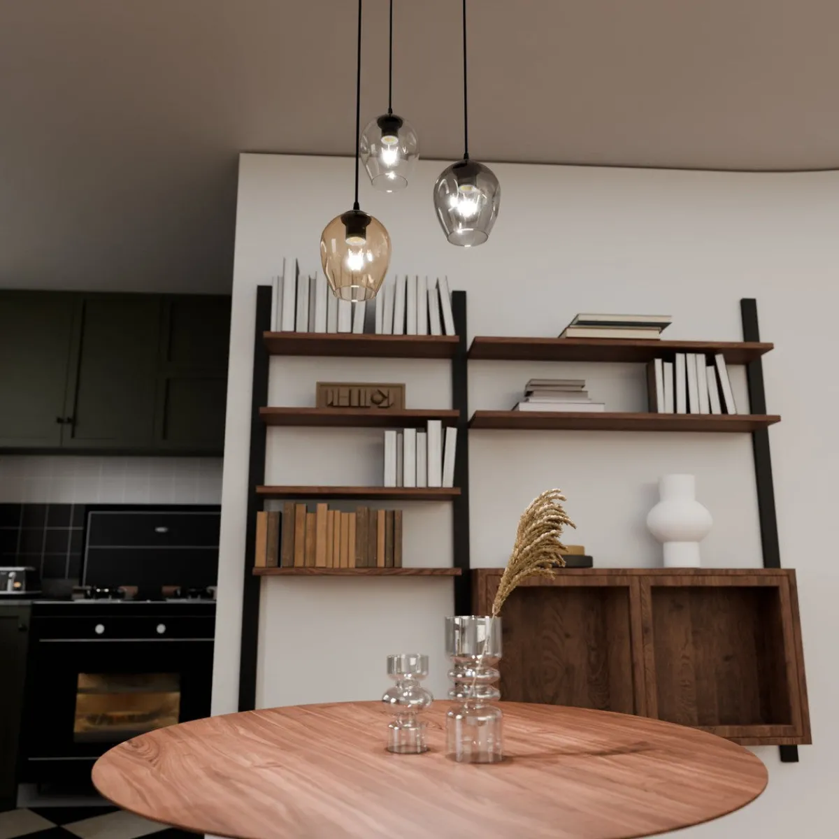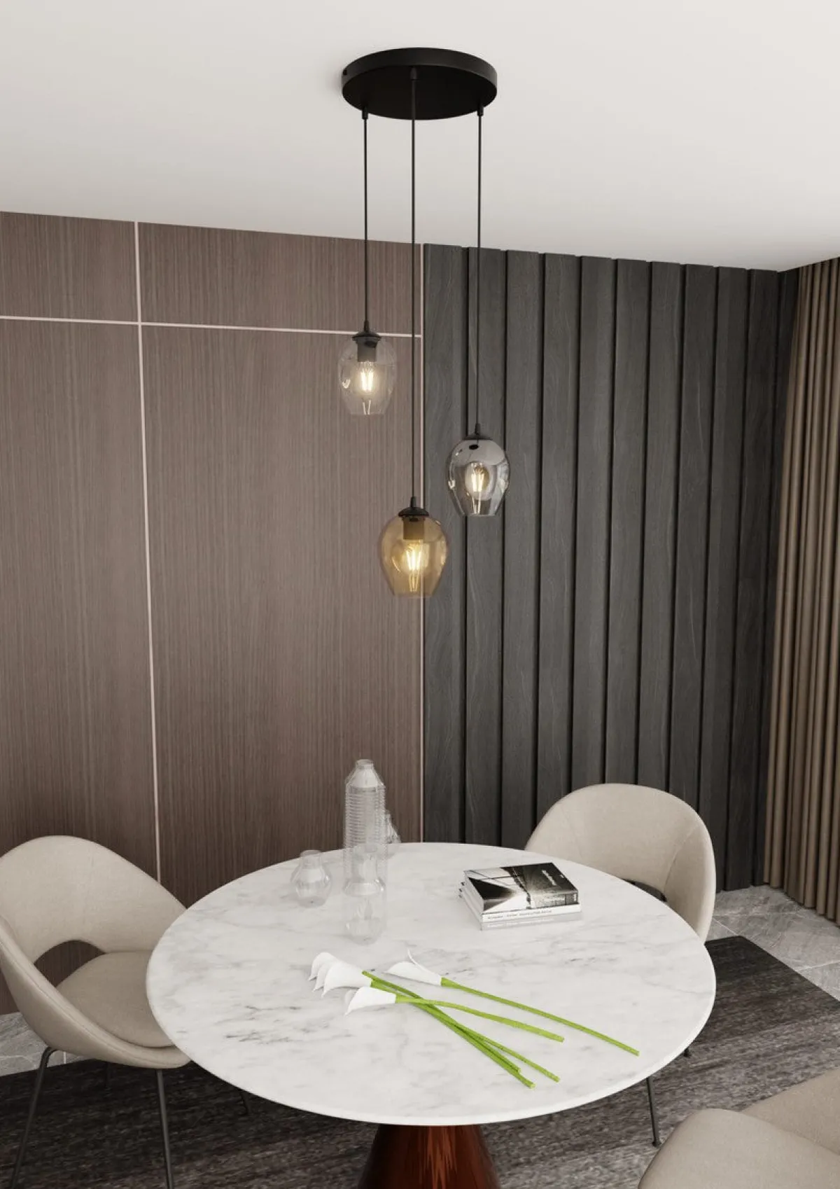 Istar er en nydelig pendelserie, som blant annet finnes som 3 eller 4 lys. Modellen er i fargen sort og kan velge mellom klart-, røykfarget- eller amberfarget glass.
