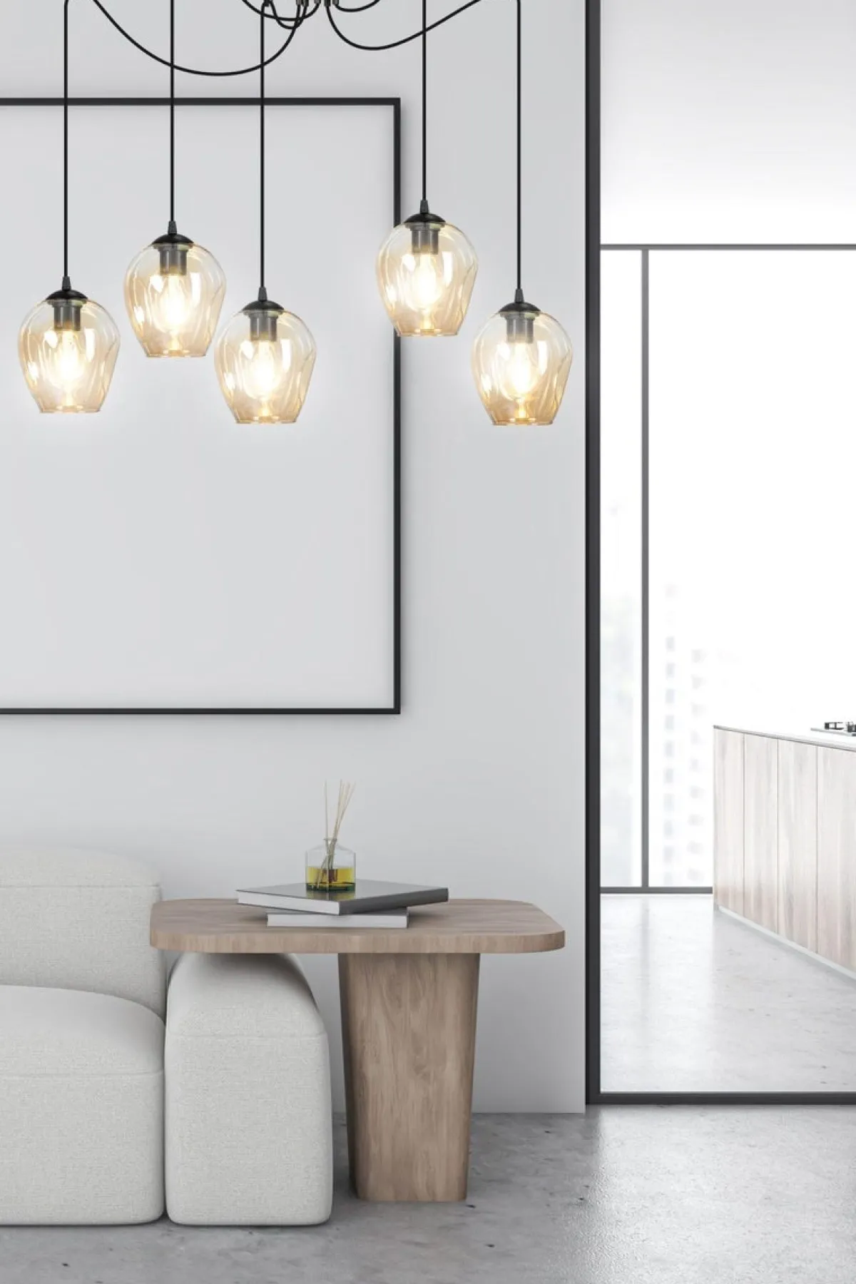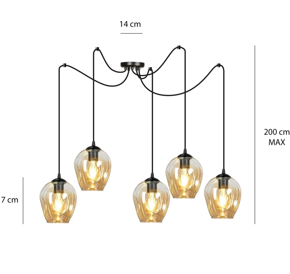 Kjøkkenbelysning Tak|Takpendler>Emibig Level takpendel 5 lys – Svart/Amberfarget Svart / Amber