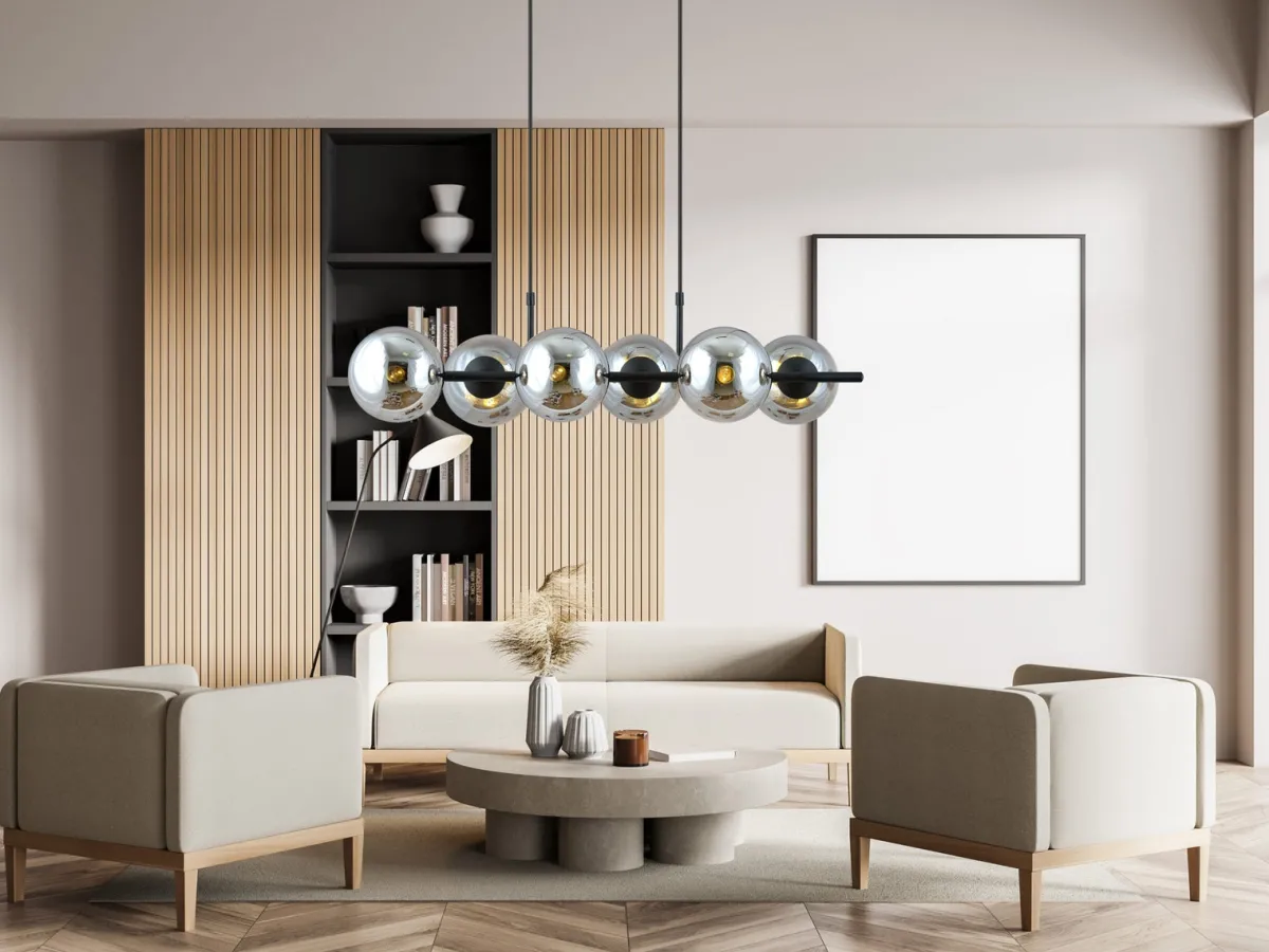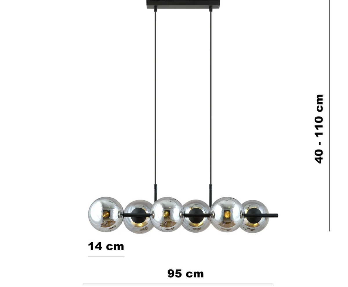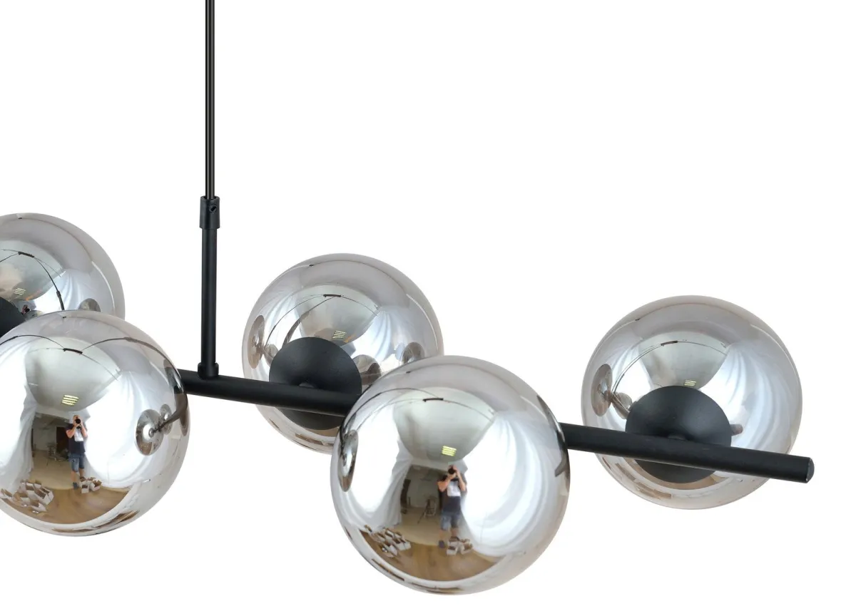 Rory en moderne taklampeserie. Modellen finnes som 6 eller 8 lys og i farget kuppel i klar, røykfarget, eller opal glass.