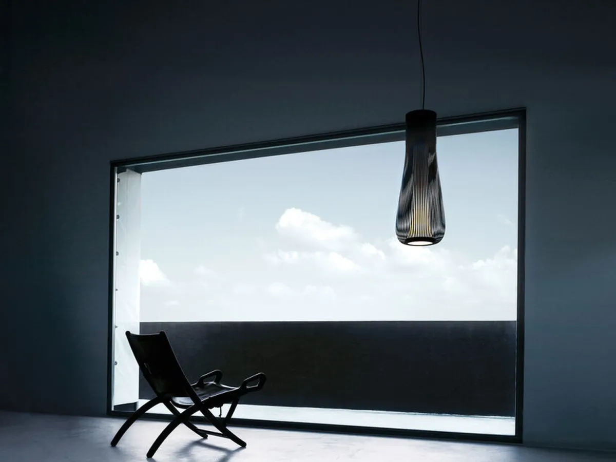Chasen takpendel fra Flos gir ett spredt og fint lys til rommet. Taklampen er flott å bruke over spisbord, salongbord, på soverom og i en trappeoppgang. Lampen er laget av ett foto-kjemisk etset rustfritt stål med borsilikatglass-skjerm og flytende maling er brukt som beskyttelse. Lyset på lampen kan justeres ved hjelp av en mekanisk bevegelse som åpner skovlene, for dermed å variere formen på lampen.
