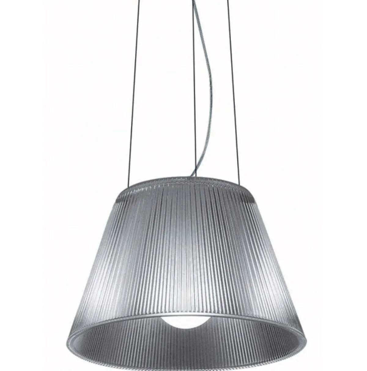 Romeo Moon taklampe ble designet av Philippe Starck i 1996, og er en del av en serie med gulv, bord og taklamper. Denne lampen er stilren og klassisk, og gir ekstra godt med lys da man kan ha hele 150 watt i den. Den gir godt med generelt lys, samtidig som den gir lys ned i bordplaten. Lyskilden er skjult inni en glasskuppel, slik at man får et mykt lys uten å blendes.