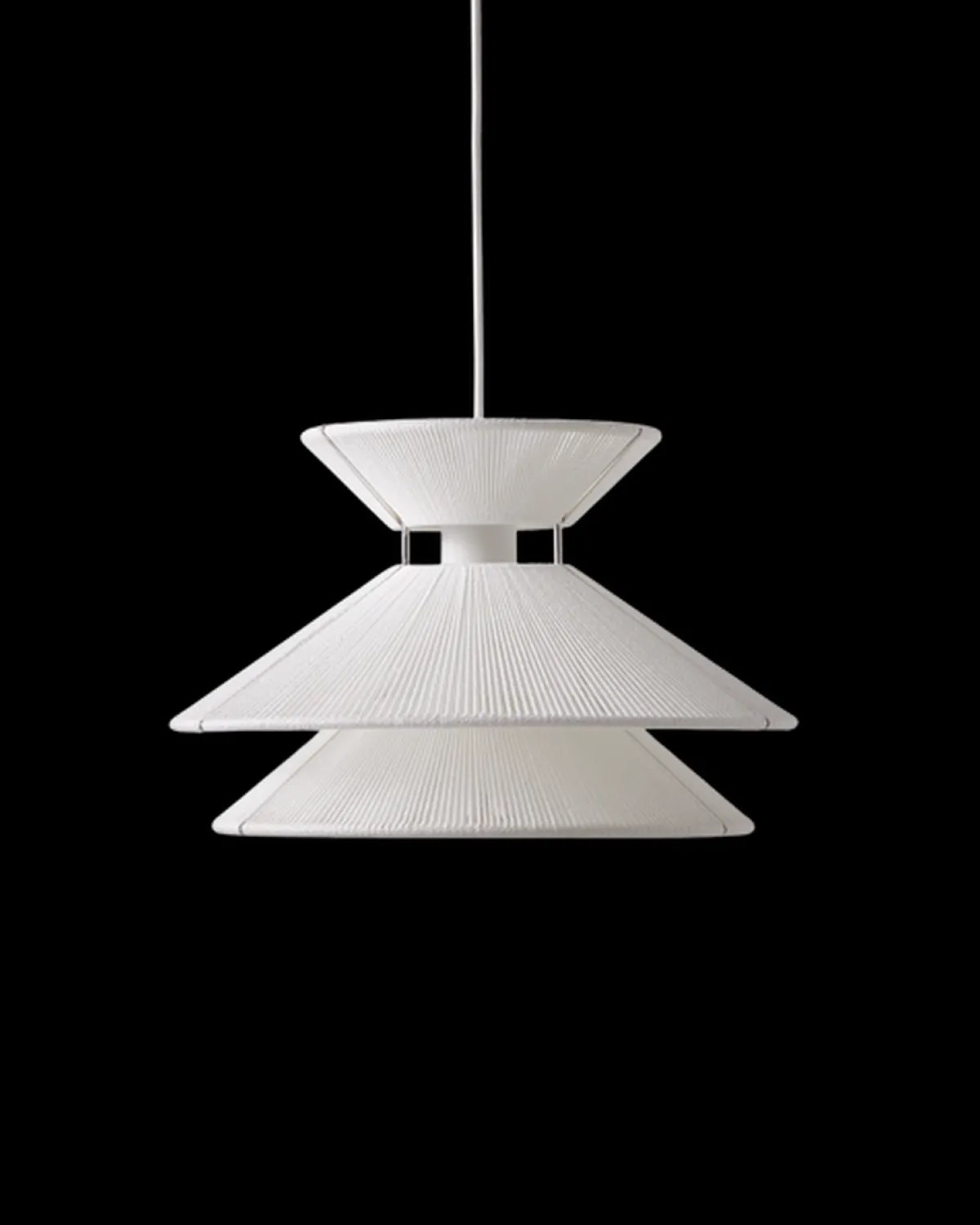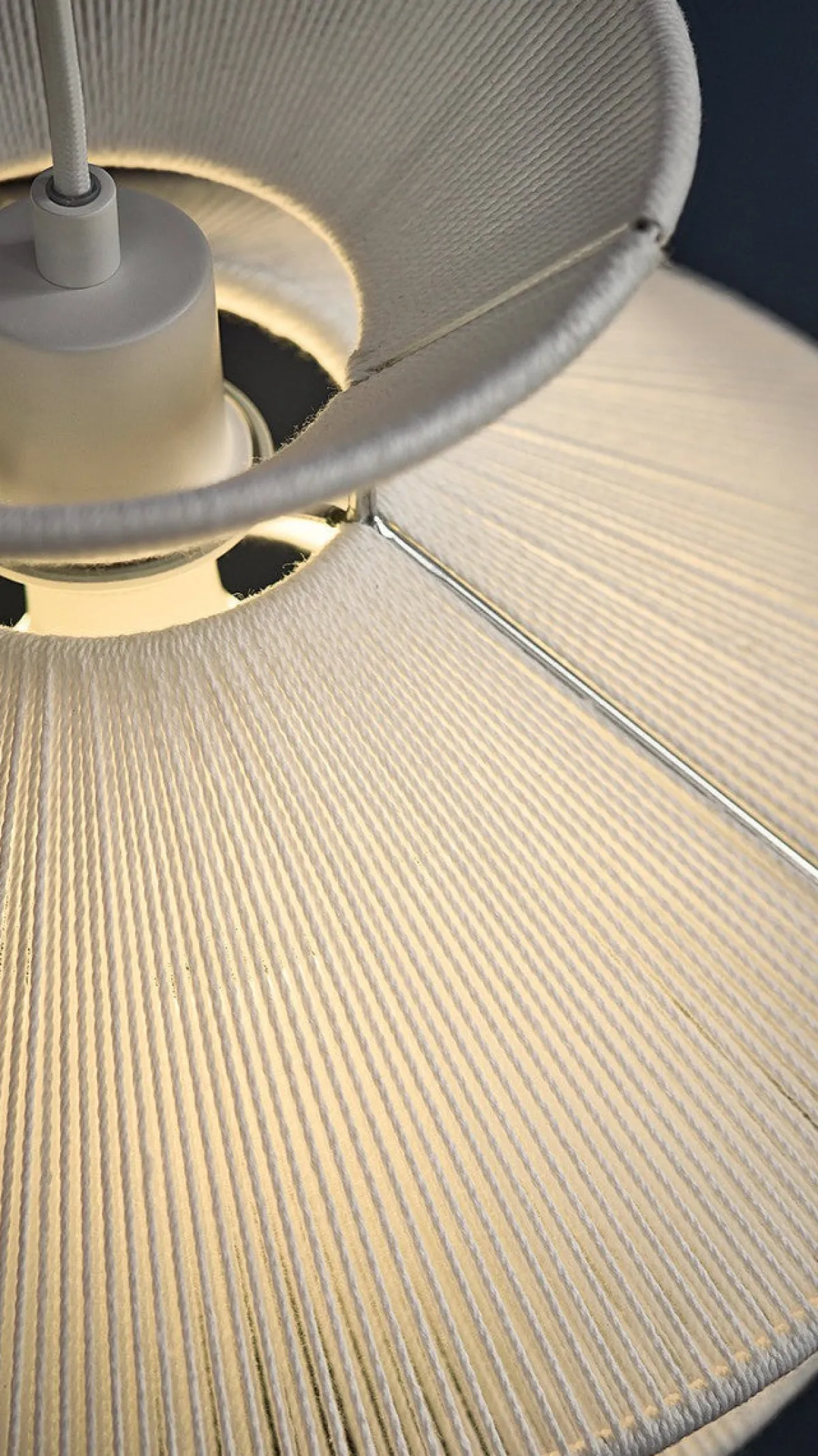 Tilgjengelig i både pendel og bordvarianter, er Kiku produsert av rustfritt stål og med linstrenger.