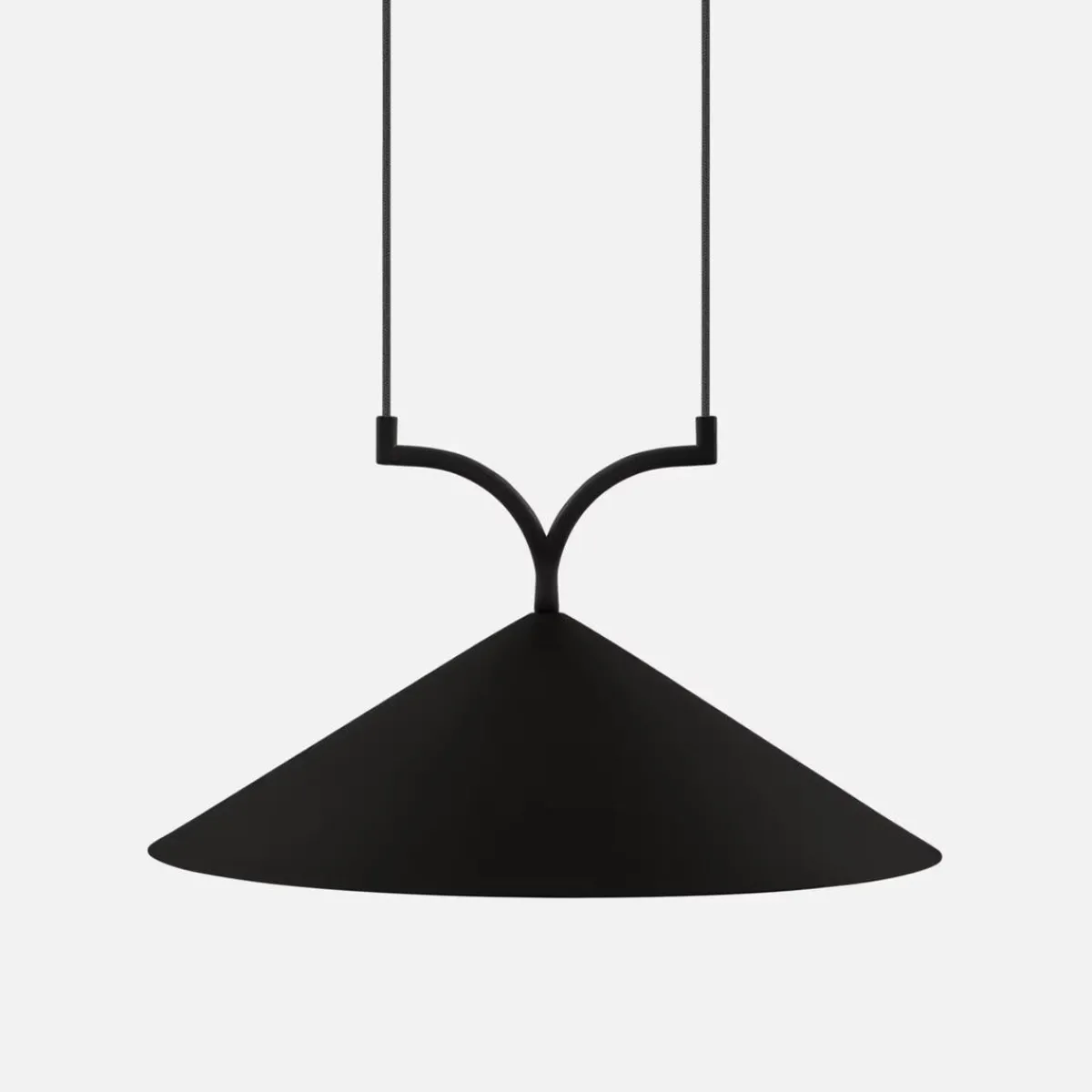 Curve er laget av mattlakkert metall og har to 120 cm lange svarte tekstilledninger med en matchende metalltakopp.