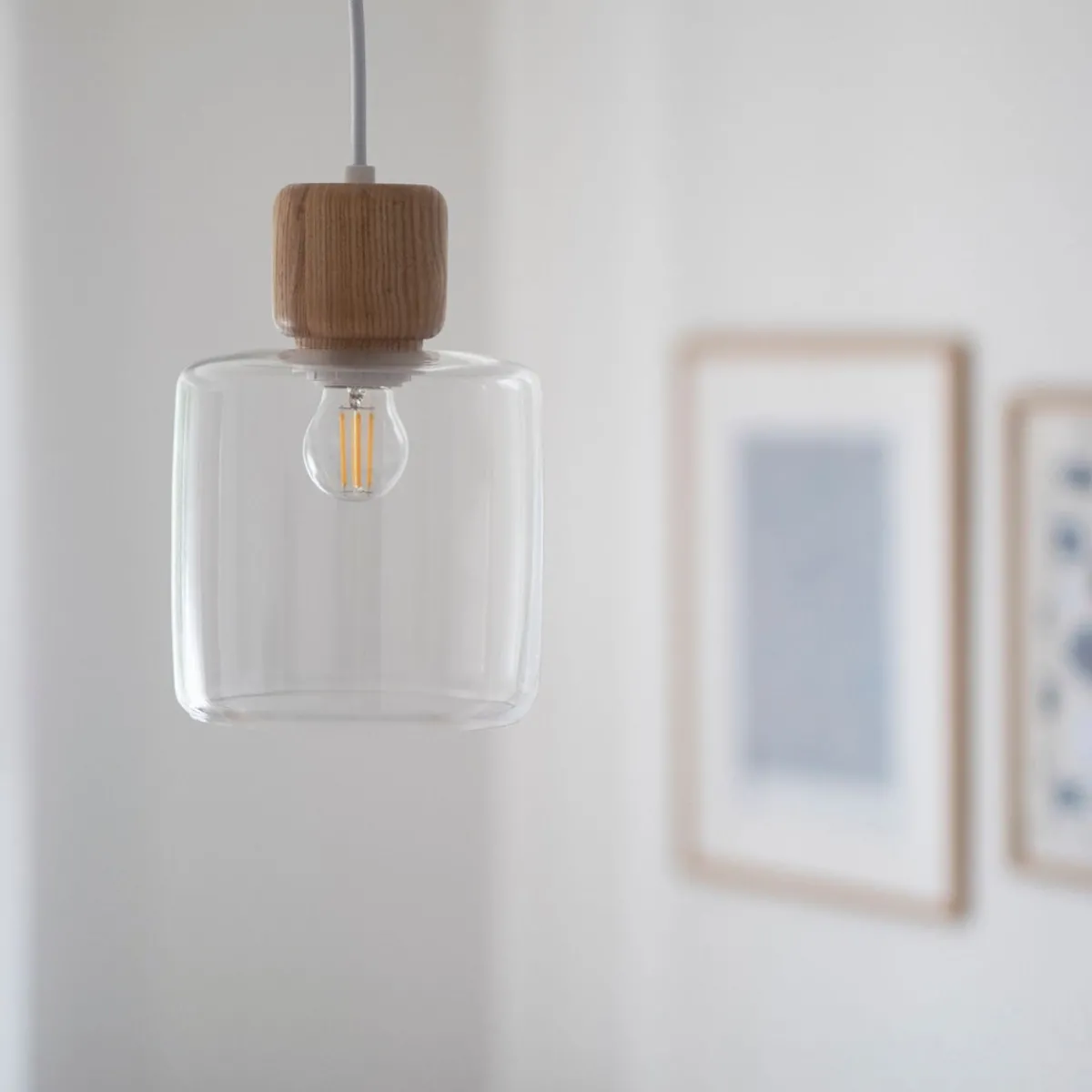 Lampeknotten i tre skaper en fin kontrast til glasskuppelen.
