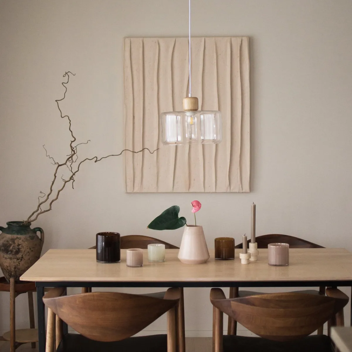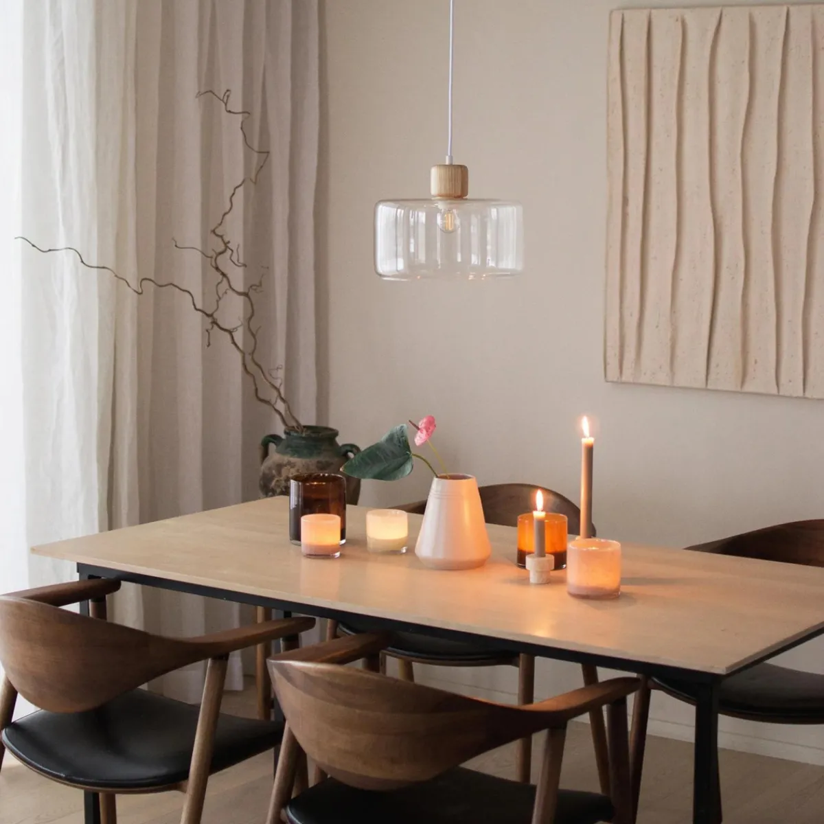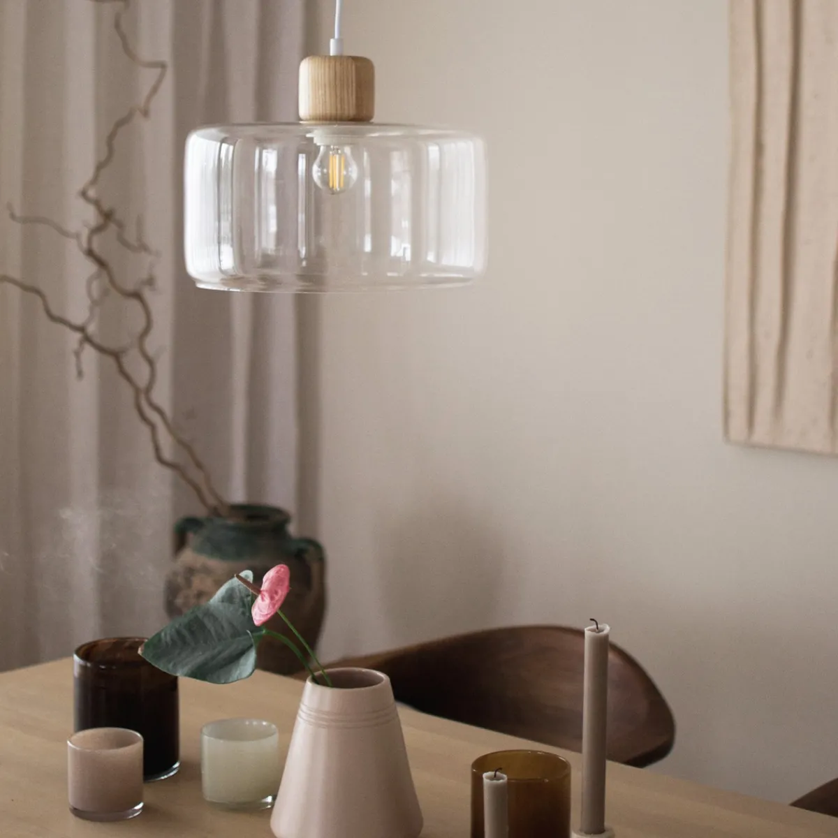 Lampeknotten i tre skaper en fin kontrast til glasskuppelen.