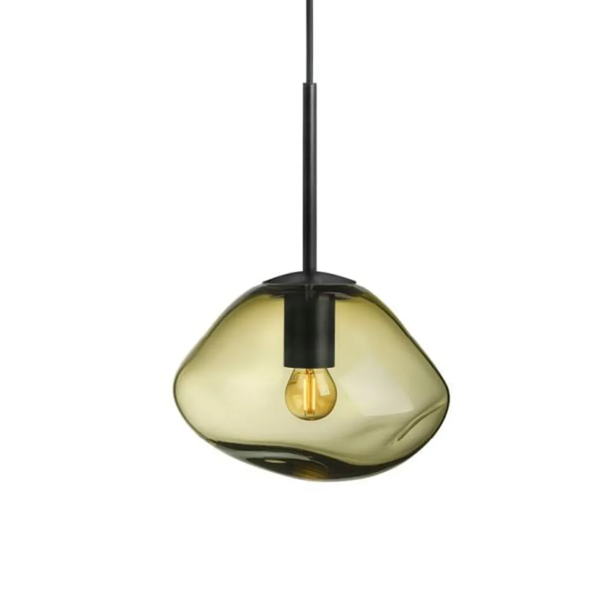 Få en følelse av ro og balanse med oliven glasspendellampe.