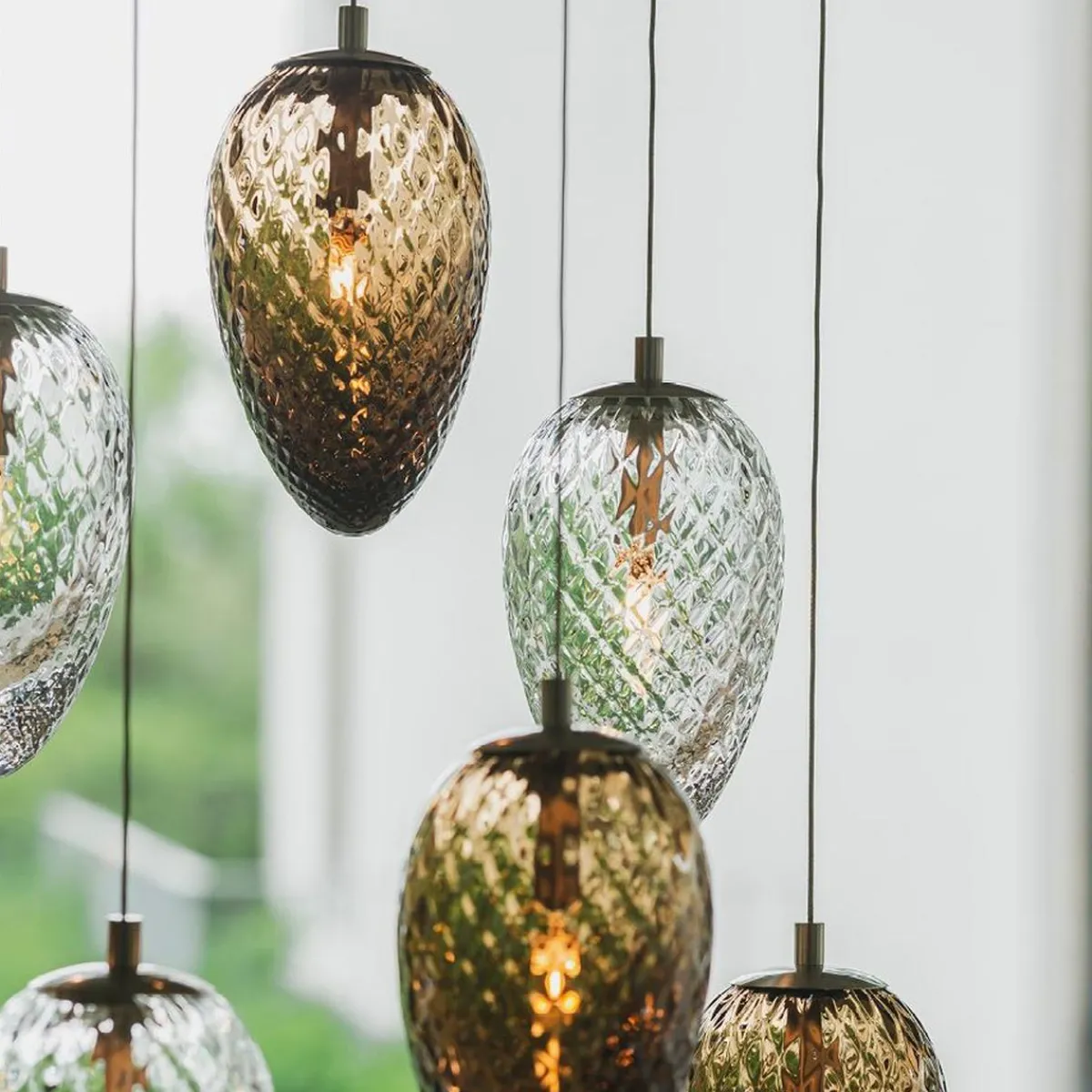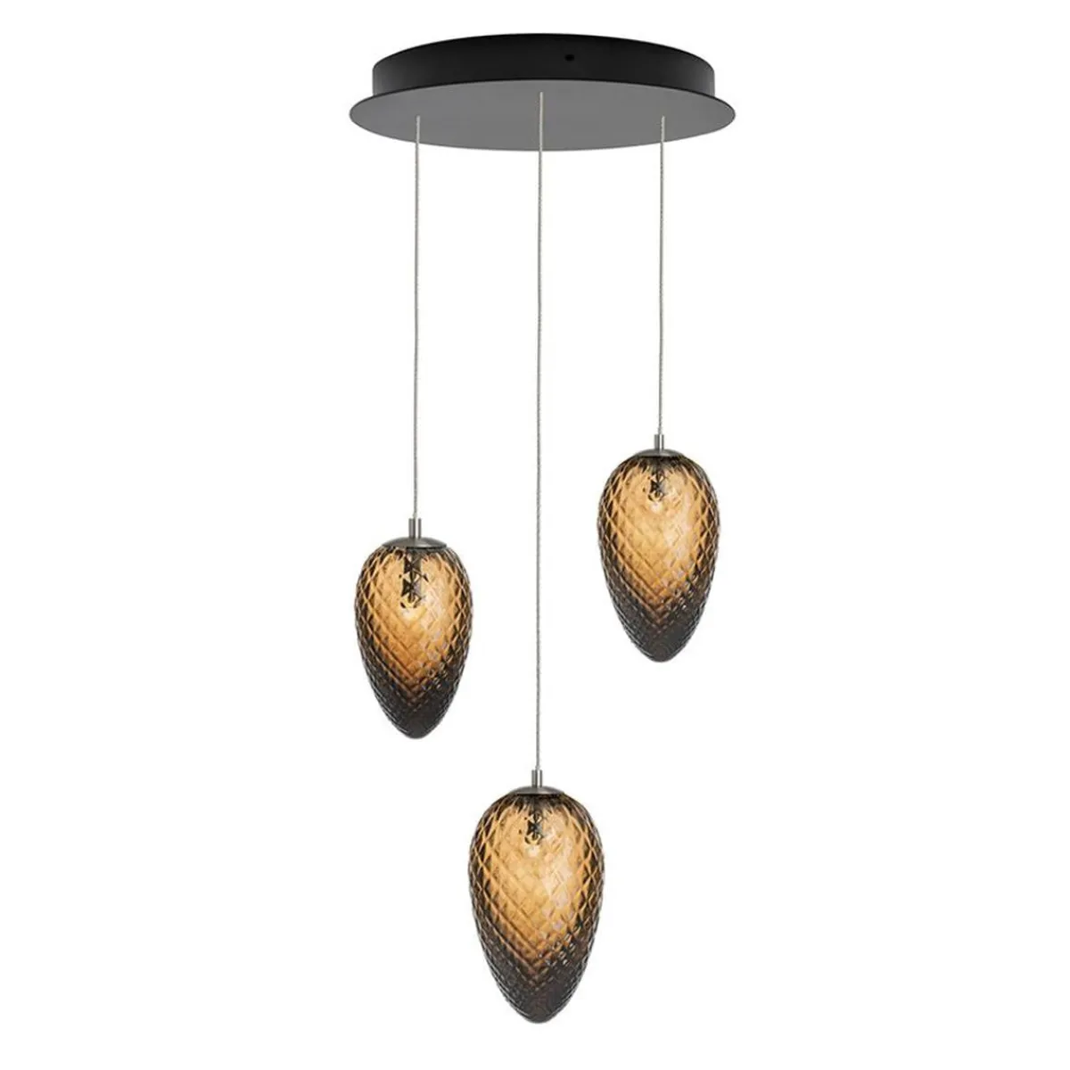 Inneholder 3 munnblåste kongler i kakao farget glass, i størrelsene 17cm, 21cm og 23cm.
