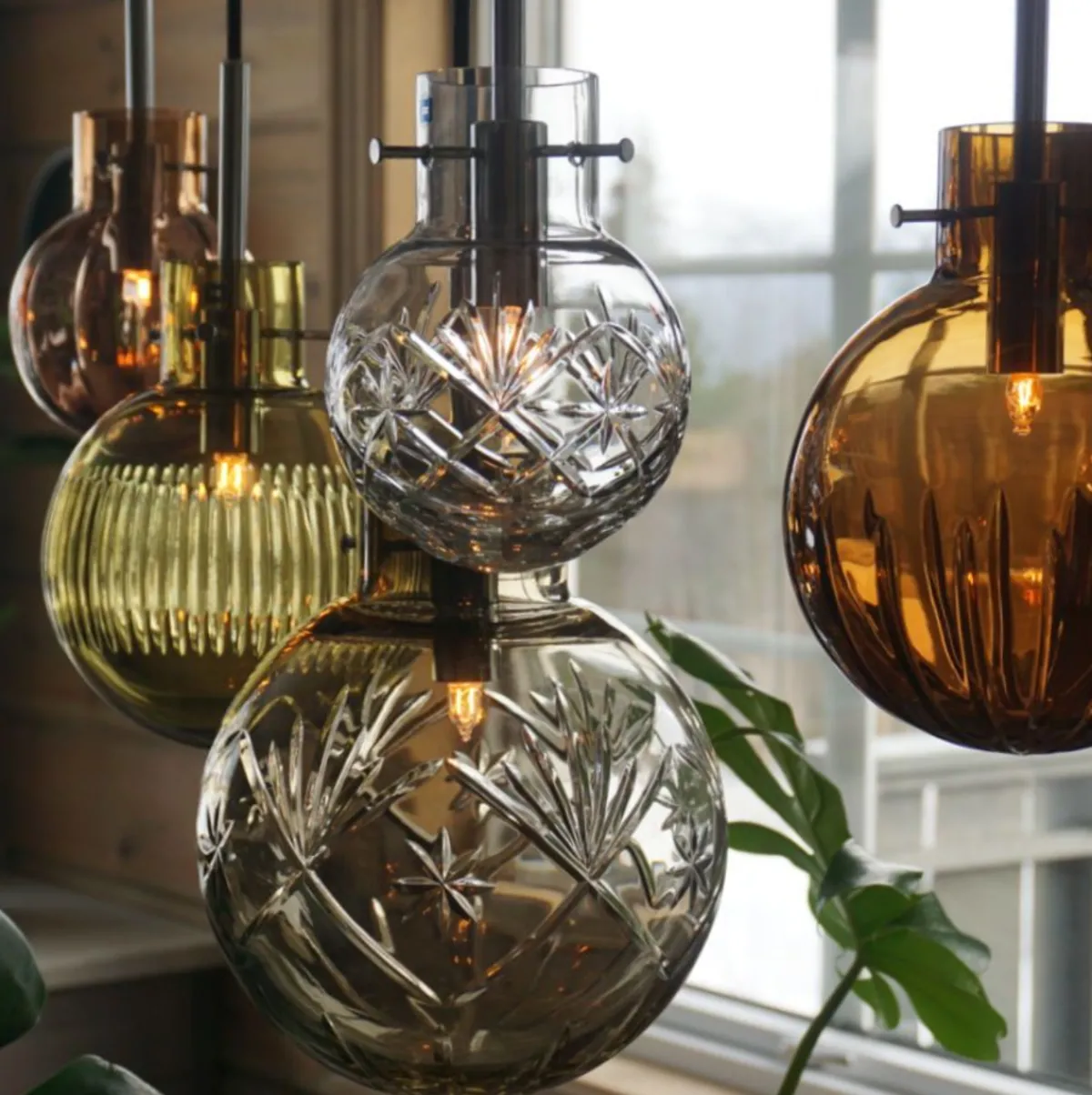 Interiørstylisten Renate Larsen Lorentzen har valgt den perfekte kombinasjonen av krystallkuler til nettopp sin hytte. Hun har gått for de klassiske slipmønstrene Finn, Skjær og Optikk i fargene klar, kakao og oliven. Nå kan du også få den lekre stilen til Renate med hennes selvkomponerte krystallkulelampe Rav.