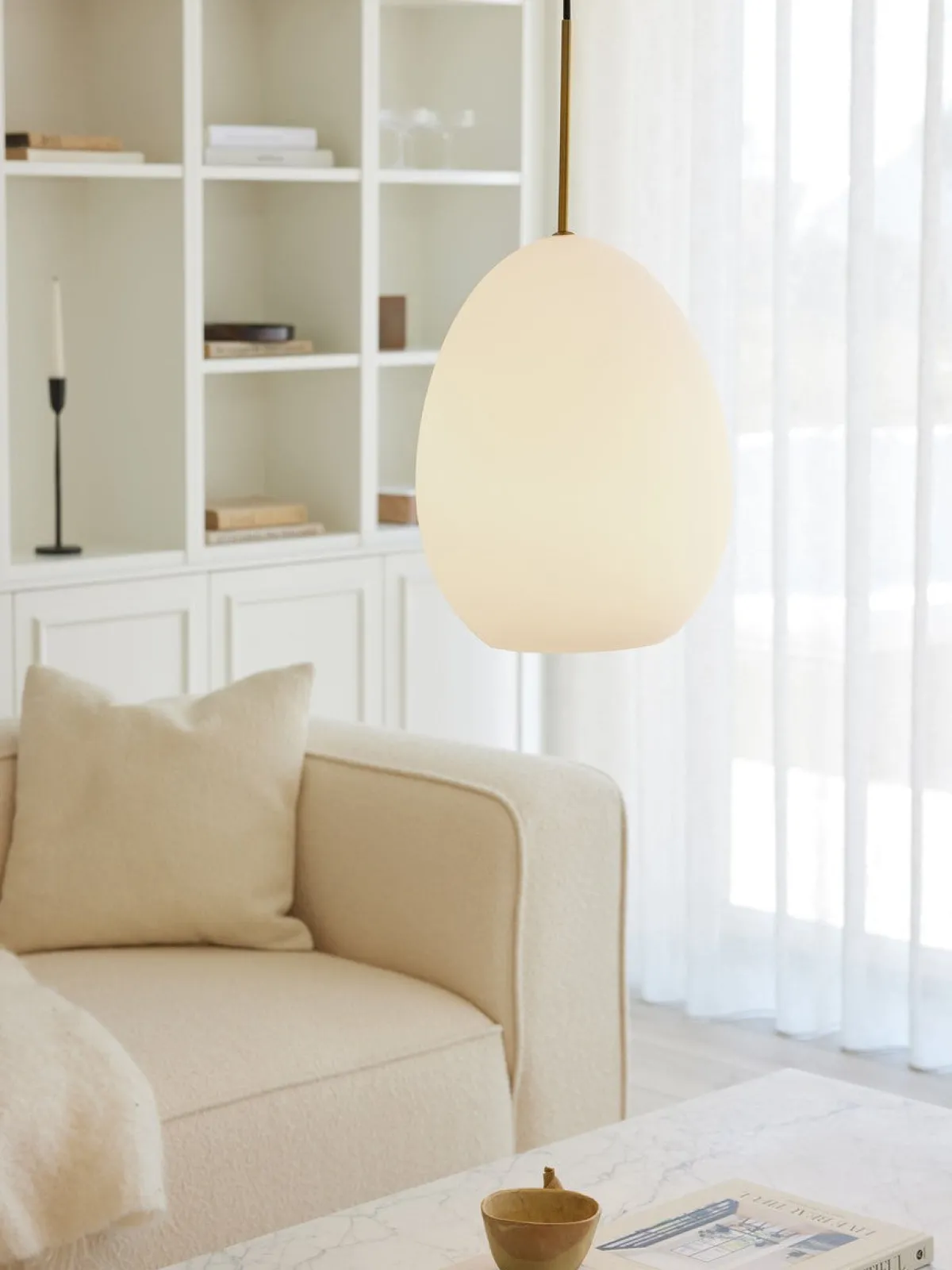 De to lampene i Bodø -serien er bevisst enkle og fokusert på detaljer. Opalglassets myke overflate og runde form gir en funksjonell og effektiv lysrefleksjon.
