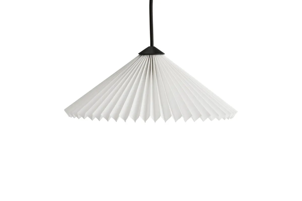 Matin Pendellampe består av en plissert bomullsskjerm kombinert med en bomullsflettet ledning som kan henges fra taket for å skape en funksjonell og elegant pendel. Skjermen gir en innbydende atmosfære til de fleste rom i hjemmet og kommer i forskjellige størrelser og fargealternativer.
