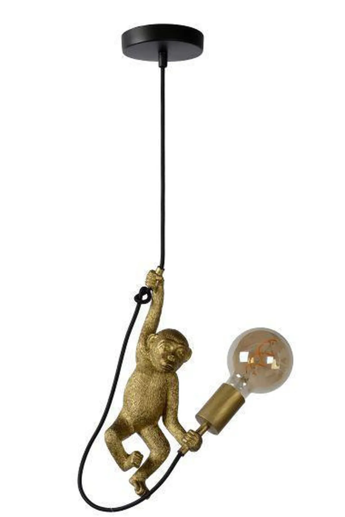 Nydelig lampeserien med retro utseende. Her er det sjimpansen som er i hovedrollen. Plastfiguren dingler på tekstilledningen. Som en dyktig akrobat holder han fast med den ene hånden. Lampen kan justeres i høyden, fra 50 til 174,5 centimeter. Du kan enkelt koble lampen til en dimmer, men da er det viktig at du bruker en lyspære som kan dimmes.