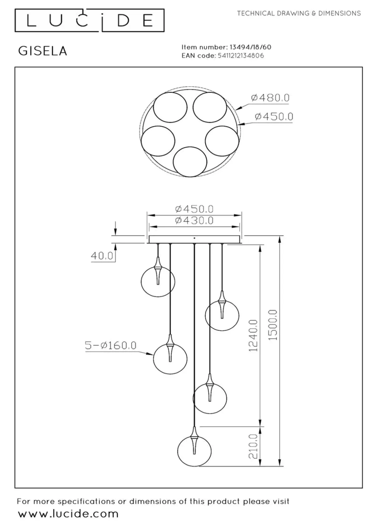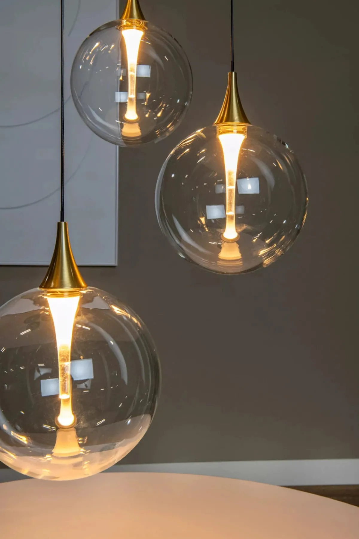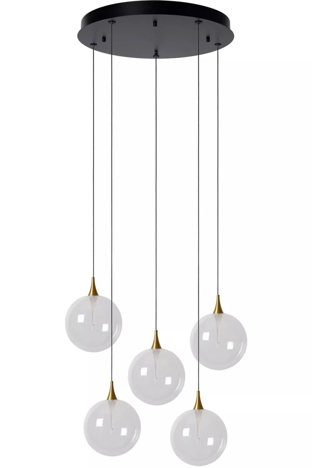 Synes du noen ganger det er vanskelig å holde alle ballene i luften? Overlat det til Gisela, en hengende lampe som består av forskjellige pendler med klare glasskuler, som hver kan justeres i høyden. De integrerte LED-pærene kan dimmes og sprer varmt, hvitt lys. Denne tidløse, sfæriske designen fungerer godt i både klassisk interiør og moderne hjem. Enten du henger dem i samme høyde eller lekende fallende: du vil alltid score med denne elegante hengende lampen.
