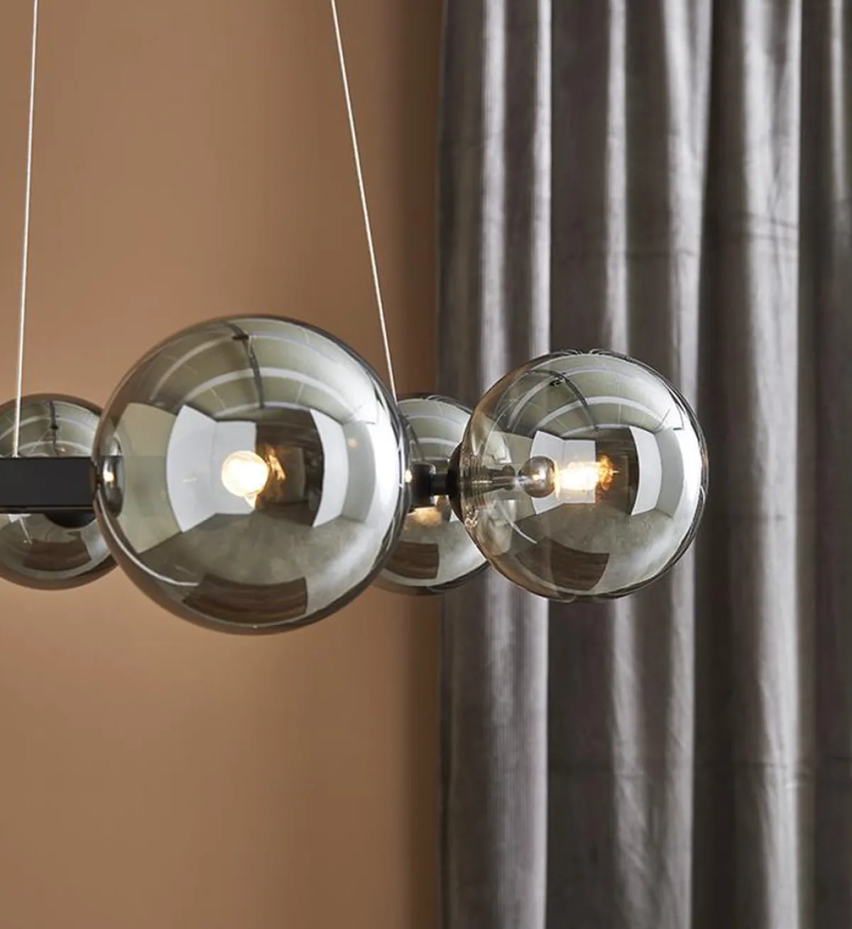 Circle er en dekorativ takpendel som finnes i to ulike farger. Sort med røykfarget kuppel og gullfarget base med røykfarget kupler.