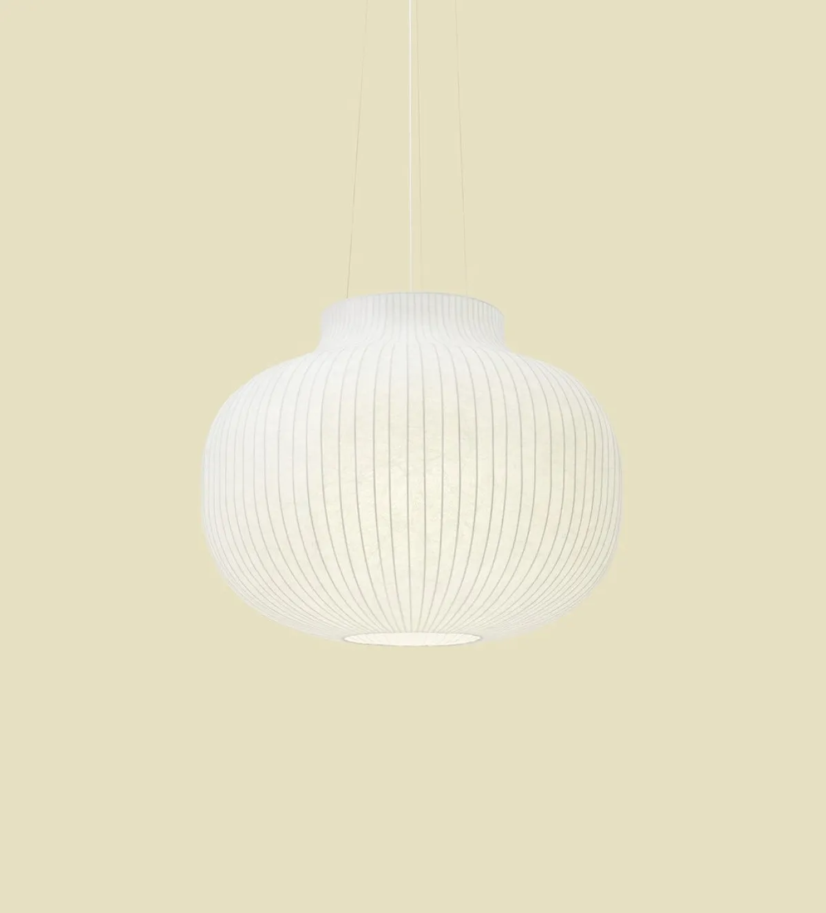 Strand Pendant Lamp fra Muuto er designet med myke, lekne former for et moderne uttrykk. Designet på taklampen gir både diffus belysning og direkte belysning. Designet er laget i et sprøytet kokong-materiale som består av bittesmå tråder for en kompleks og spennende struktur, som sammen med sin moderne form gir Strand Pendant Lamp et nesten skylignende utseende. Kokong-materialet filtrerer lyset og gir en varm og behagelig glød. Strand Pendant Lamp henger lett i rommet, og gir komfort og harmoni til ethvert rom.