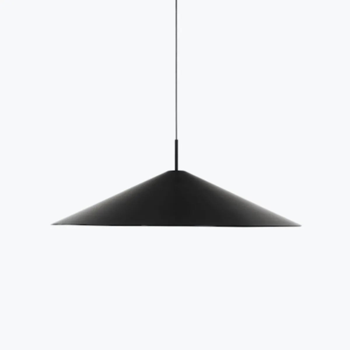 Belysningsserien Brolly demonstrerer styrken i enkle former. Presise og gjennomtenkte i sitt formspråk utstråler lampene en form for omhyggelig, nesten villedende enkelhet, som kan fungere som en tidløs detalj i ethvert rom. I denne pendelversjonen av Brolly-lampen er den koniske lampeskjermen utfoldet i diametre på 70 og 90 centimeter, og de skarpe volumene forsterker designets arkitektoniske uttrykk.