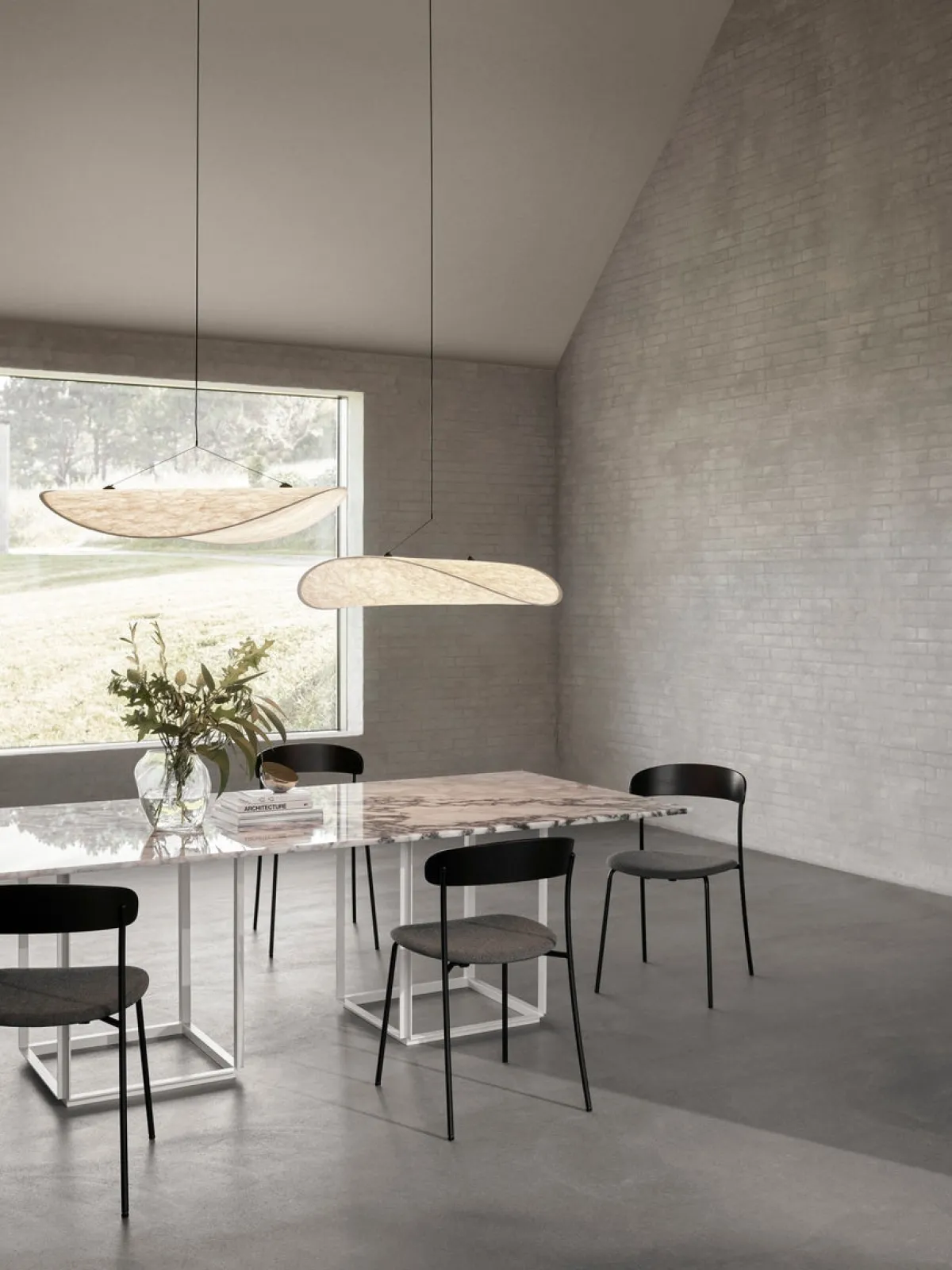 Tense Taklampe ser ut som en myk sky og skaper et spennende og lunt uttrykk til rommet. Taklampen er laget i materialet Tyvek, som er både slitesterkt og mykt. I tillegg er det 100% resirkulerbart. Lampens fleksibilitet gjør at den slanke rammen fremhever det skylignende uttrykket . Fullført med en slank LED-lyskilde, passer alle komponentene i et rør for enkel transport. En virkelig moderne tilnærming til belysning.
