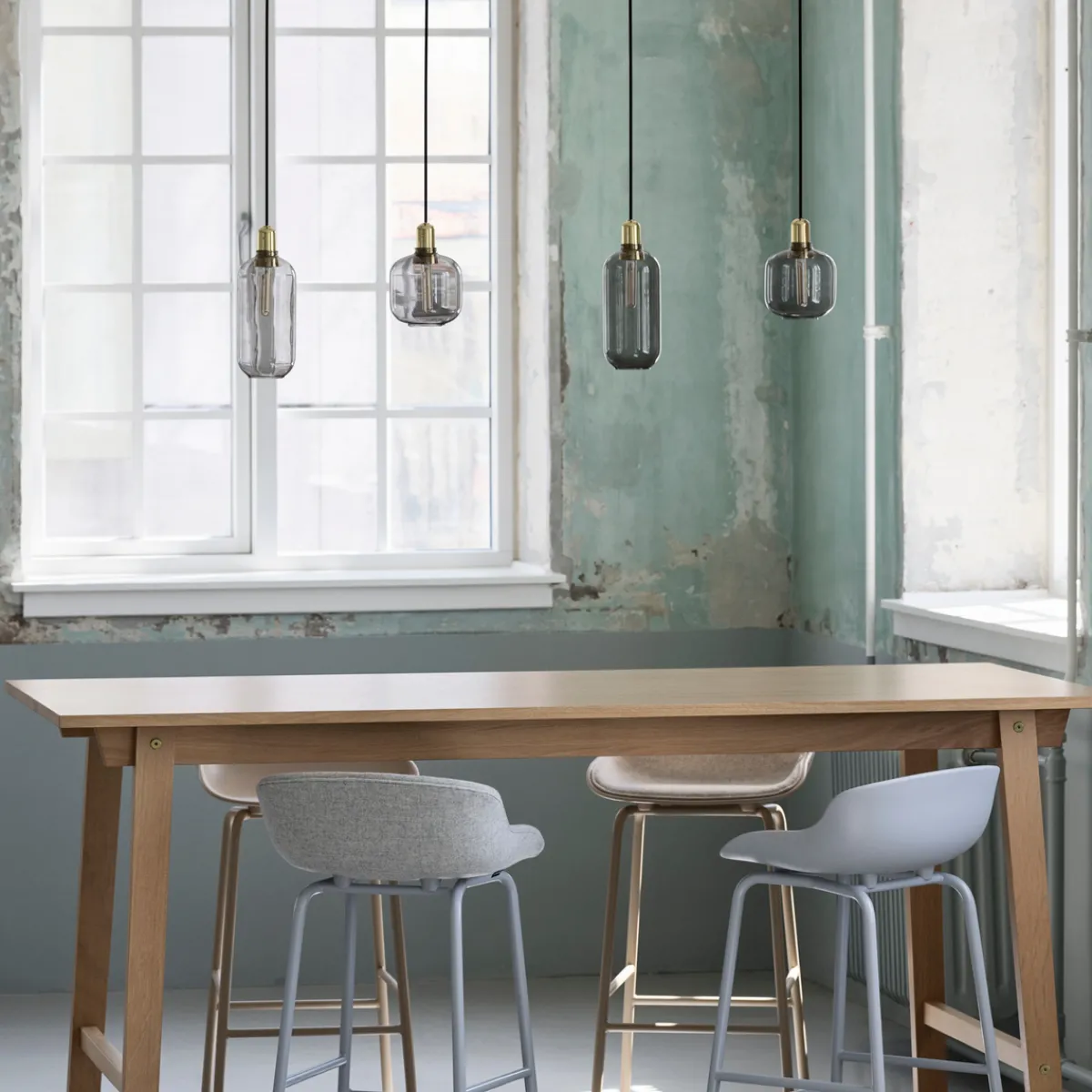 Amp Lamp L fra Normann Copenhagen er en nydelig pendel, og nå har den endelig kommet i ny versjon med røkfarget glass og messingdetaljer. Rålekker alene og i kombinasjon med Amp Lamp S, da gjerne i forskjellige høyder. Leveres med 4m tekstilkabel. Lyskilde ikke inkludert.