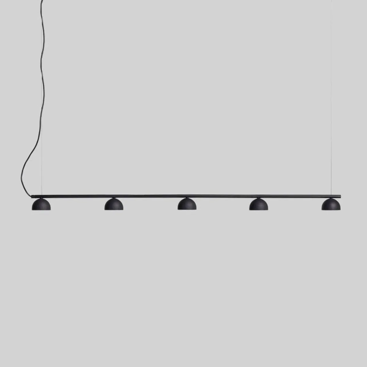 Blush Rail-pendelen er laget av pulverlakkert stålrør og tilgjengelig i utvalgte farger, og er integrert med et sett med enten tre eller fem små opale akryldiffusorer som alle er koblet sammen for enkel installasjon.