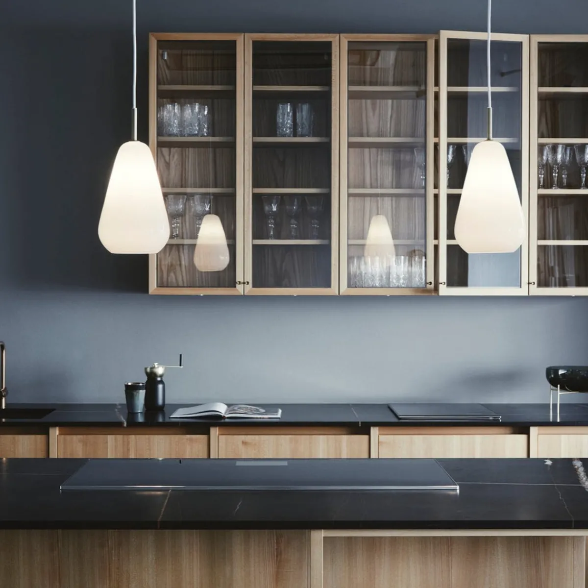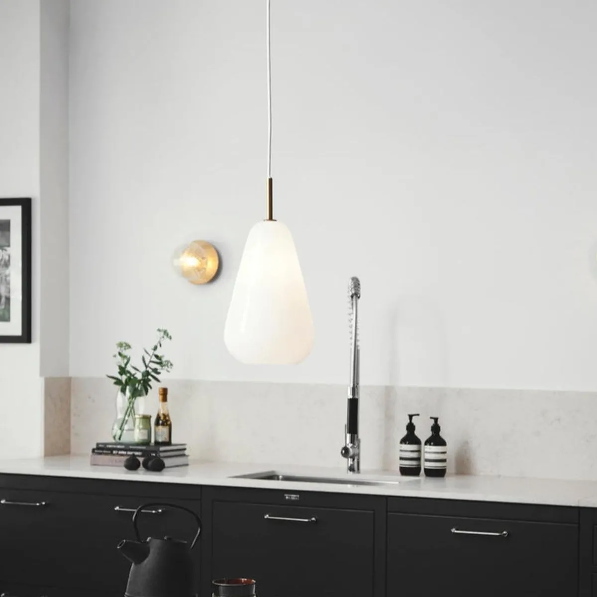 Anoli 1 Medium Taklampe er laget av materialer av høyeste kvalitet, av dyktige håndverkere. Uttrykket er enkelt og består av munnblåste dråpeformede glassvedheng. Ta med det unike nordiske lyset innendørs med Anoli 1 – Medium taklampe.