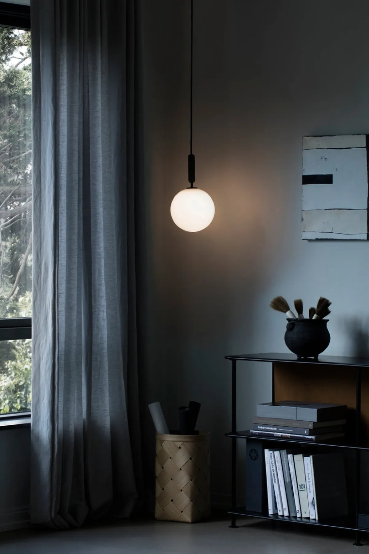 Miira Large takpendel er solid og tung, noe som skaper en hyggelig følelse av samspill med resten av taklampen, som er lett og smal i utseendet. Selv om den nye Miira Large er større enn den eksisterende Miira -kolleksjonen, har det minimalistiske designet tillatt den å beholde et sanselig og elegant utseende. Opalglasset er munnblåst og skaper en nydelig kontrast med den dype mørkegrå finishen. Miira Large er et lekkert tilskudd til resten av Miira -samlingen, og legger til mangfold og dynamikk samtidig som den beholder roen og balansen som gjennomsyrer kolleksjonen.