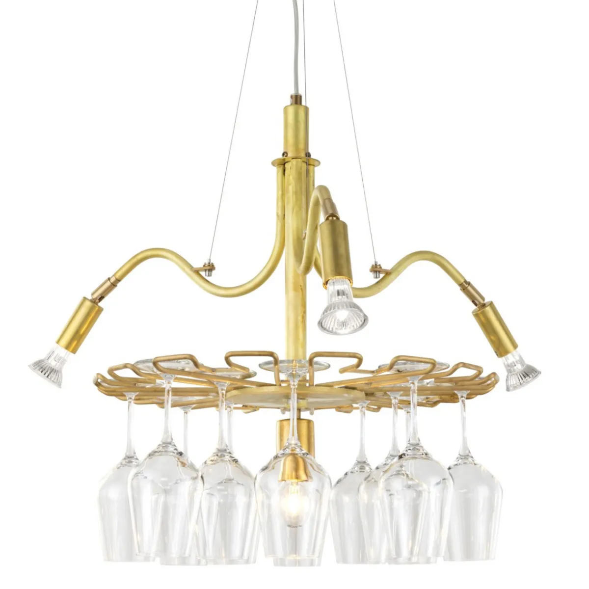 for hånden når det er mulighet til å skåle. Den rå messingen og de grasiøse krystallglassene danner sammen en enhet med gjensidig vakkert