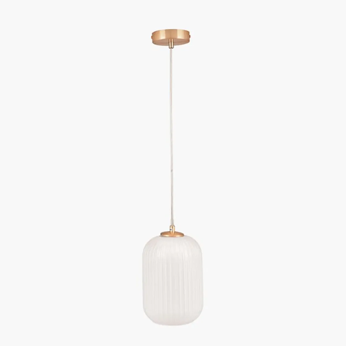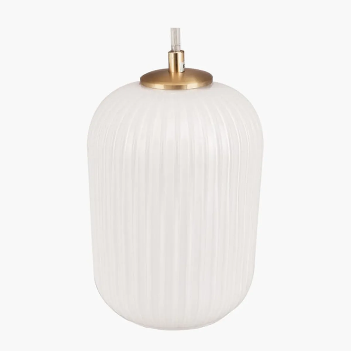 Taklampe i matt hvitt glass med detaljer i messing.