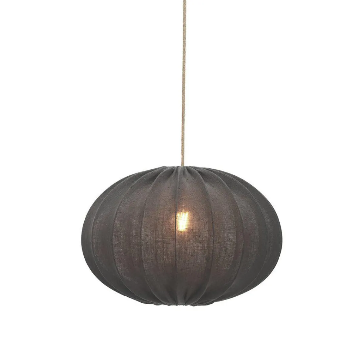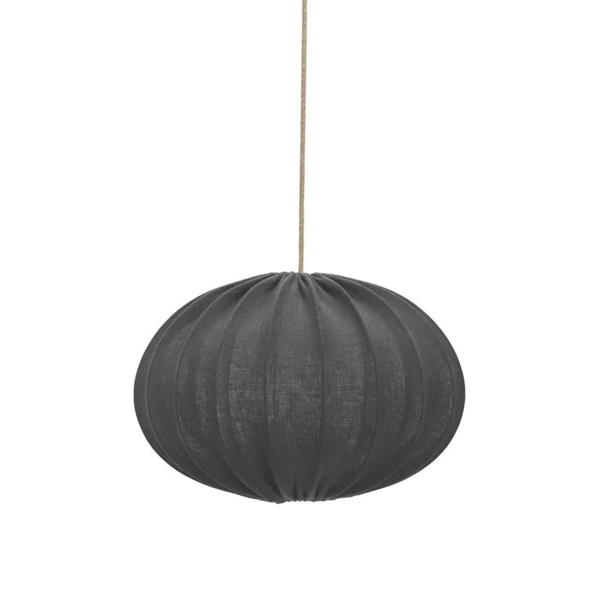 Hilma takskjerm i linstoff. Stoffet er sparsomt vevd og har en naturlig rynket effekt, som skaper karakter for lampen.