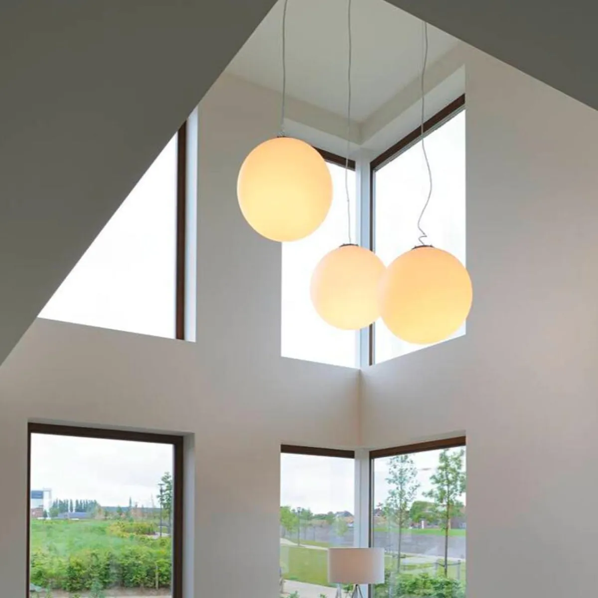 ROTOBALL 50 er en kuleformet 230V pendelarmatur og består av en armaturskjerm i temperaturbestandig plast som er rammet inn av en holder i sølvgrått stål. Den store armaturskjermen sørger for en jevn belysning fra sparelyskilden med vanlig E27-sokkel. En passende takrosett er inkludert i leveransen. Dermed er ROTOBALL 50 pendelarmatur klar for direkte tilkobling til 230 V nettspenning.