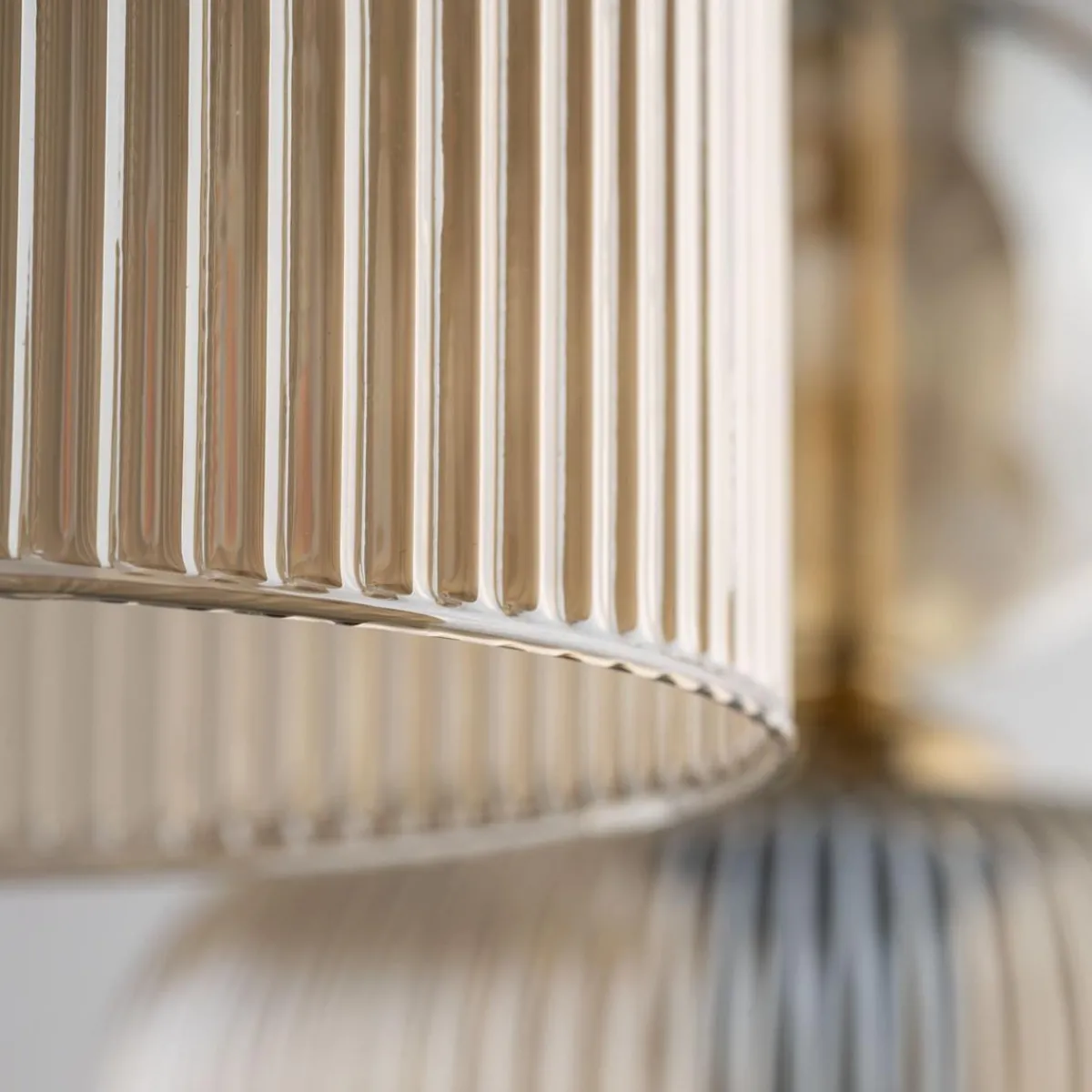 Sophia lampefamilien kombinerer klassisk form med en moderne karakter. Særegne skjermer med delikate, vertikale riller i en varm fargetone diffunderer lyset diskret og skaper en koselig atmosfære i rommet. Stilige gulldetaljer og elementer i røykfargede glasstoner gir eleganse og raffinement til det overordnede designet. Kolleksjonen inkluderer ulike varianter – fra enkle pendler, via taklamper med til vegglamper – som lar deg harmonisk belyse både små og romslige interiører. Sophia er perfekt for stuer, spisestuer, soverom og til og med kommersielle rom, og gir dem en unik karakter.