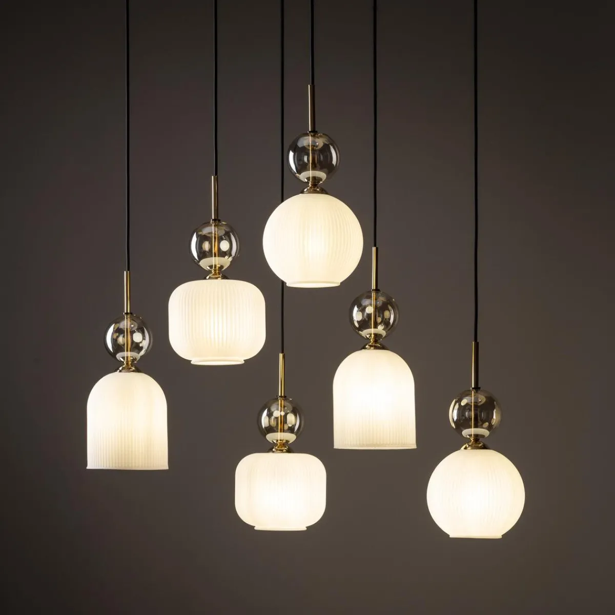 Sophia lampefamilien kombinerer klassisk form med en moderne karakter. Særegne skjermer med delikate, vertikale riller i en varm fargetone diffunderer lyset diskret og skaper en koselig atmosfære i rommet. Stilige gulldetaljer og elementer i røykfargede glasstoner gir eleganse og raffinement til det overordnede designet. Kolleksjonen inkluderer ulike varianter – fra enkle pendler, via taklamper med til vegglamper – som lar deg harmonisk belyse både små og romslige interiører. Sophia er perfekt for stuer, spisestuer, soverom og til og med kommersielle rom, og gir dem en unik karakter.