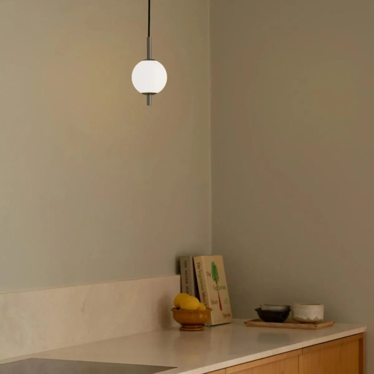 Ønsker du det lille ekstra, kan du henge flere Audrey-lamper i et hjørne eller plassere dem elegant i gangen – for en følelse av luksus. Lampen er også et utmerket valg over spisebordet eller kjøkkenbenken, og gir et mykt og behagelig lys.