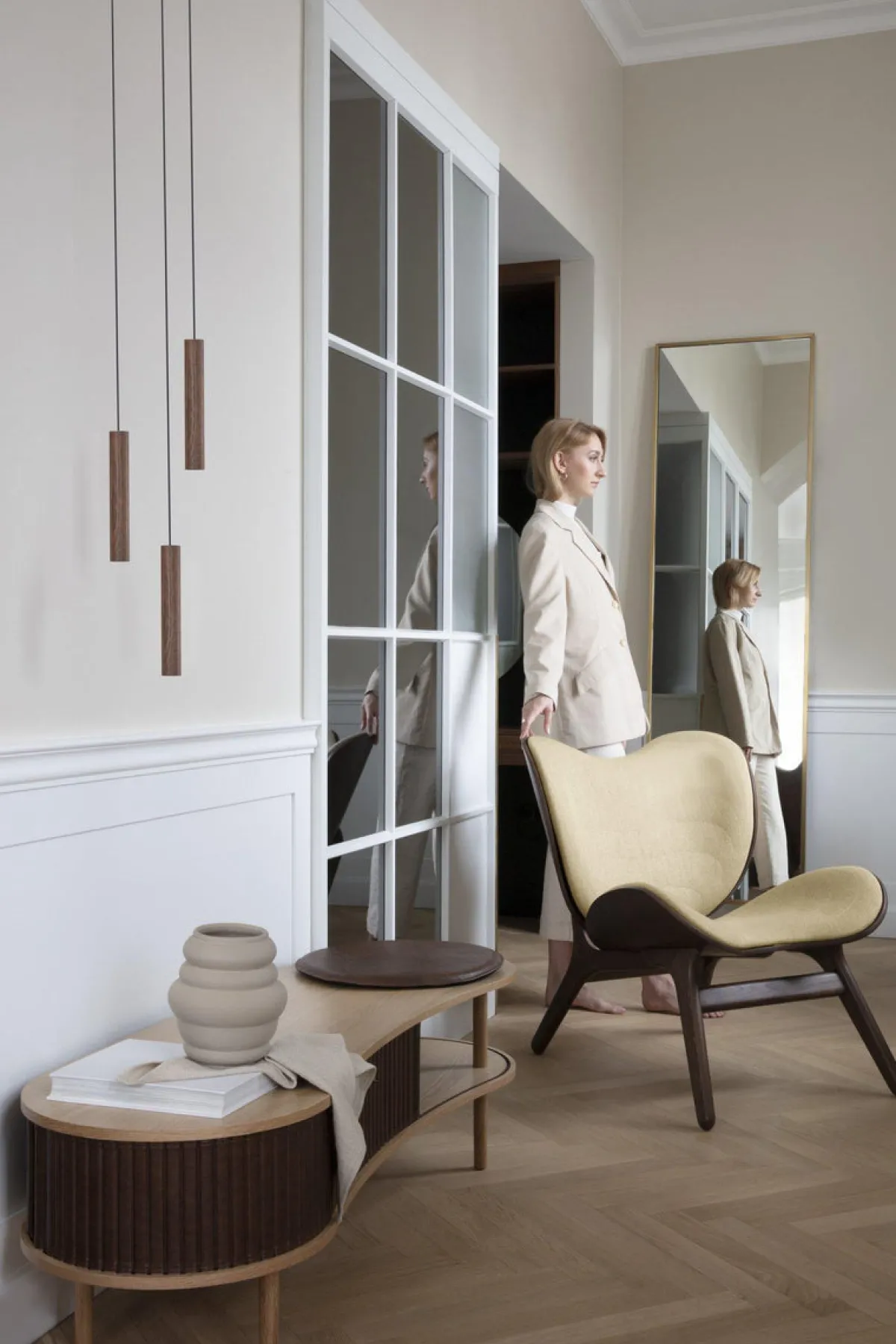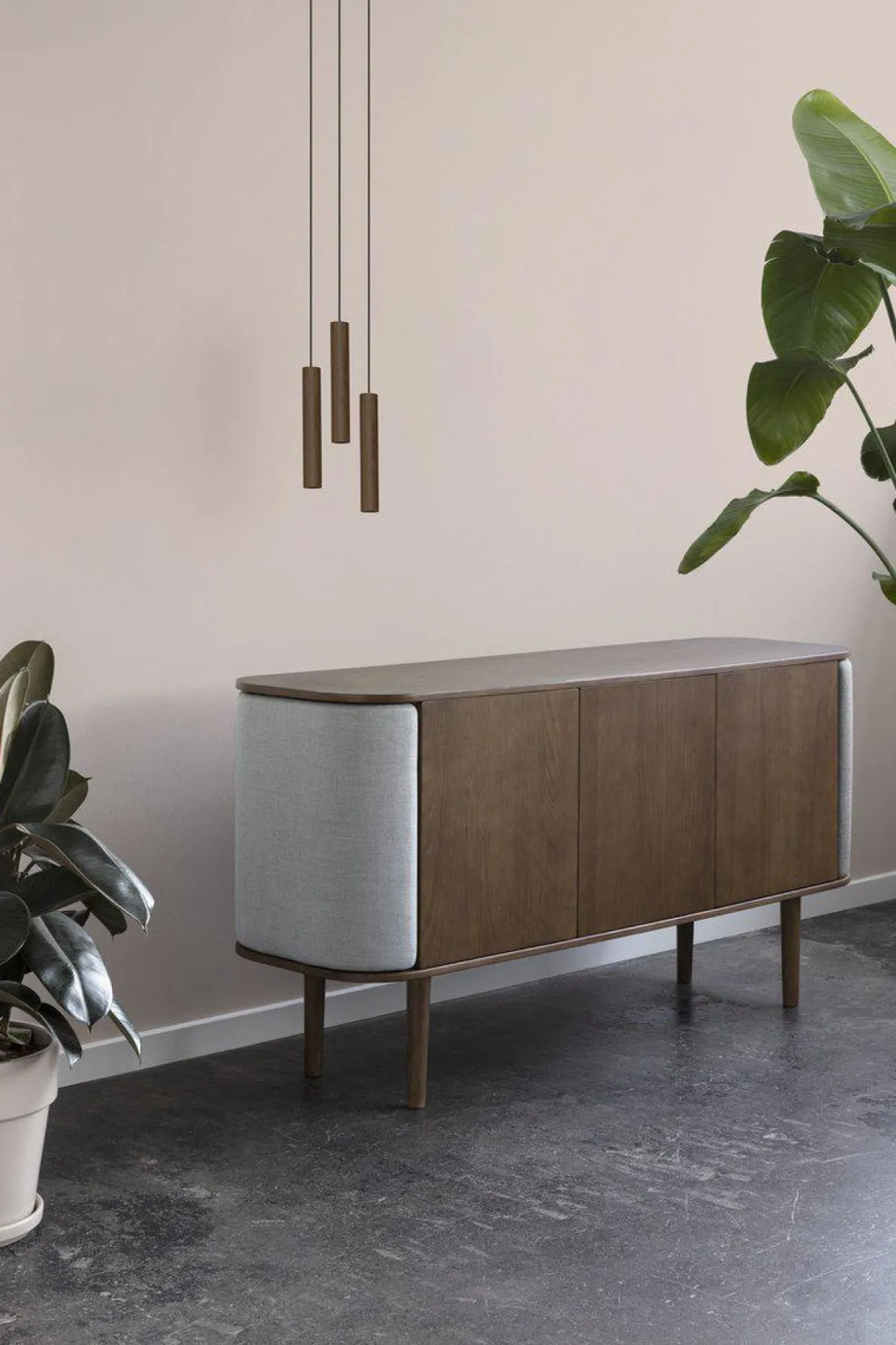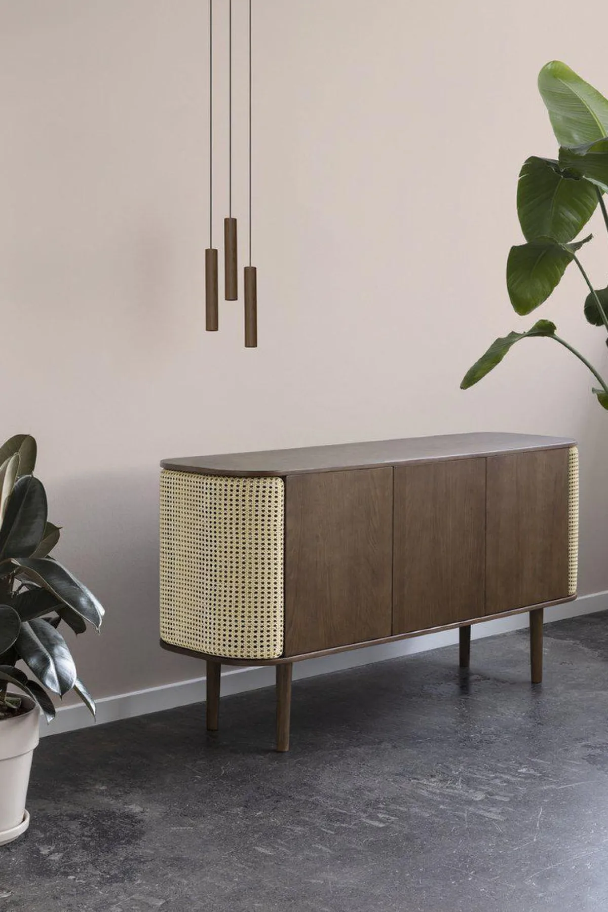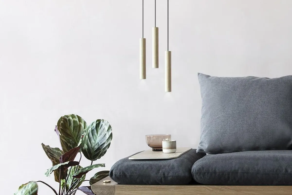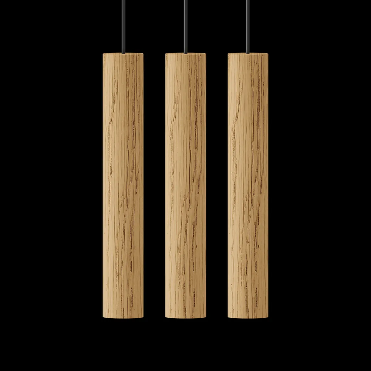 Chimes-lampen i cluster, består av tre Chimes-pendler som henger fra et sort metallfeste.