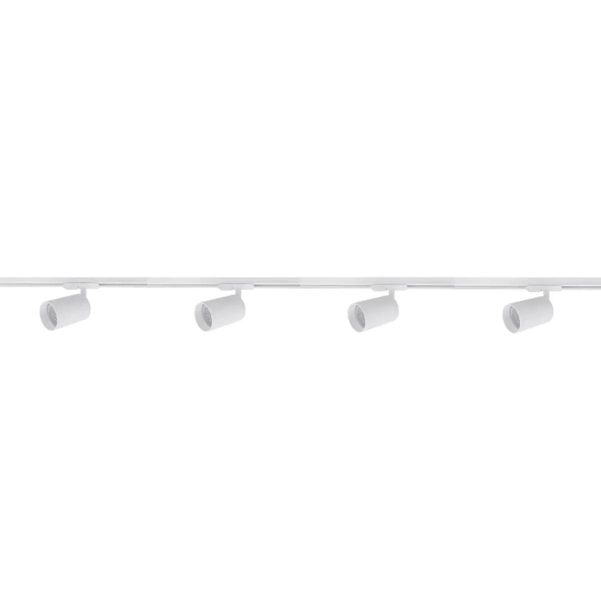Komplett 2 meter spotskinne med 4 spotter samt endetilkobling i hvit farge. Du behøver 5 stk lyspærer med GU10-sokkel til spotskinnen. Velg gjerne noen dimbare lyspærer og koble skinnen til en dimmebryter f.eks. på veggen, slik at du kan justere lysstyrken ved behov.