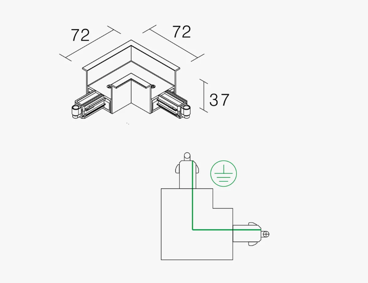 Vinkelskjøt med jordingskobling på innersiden av hjørnet.