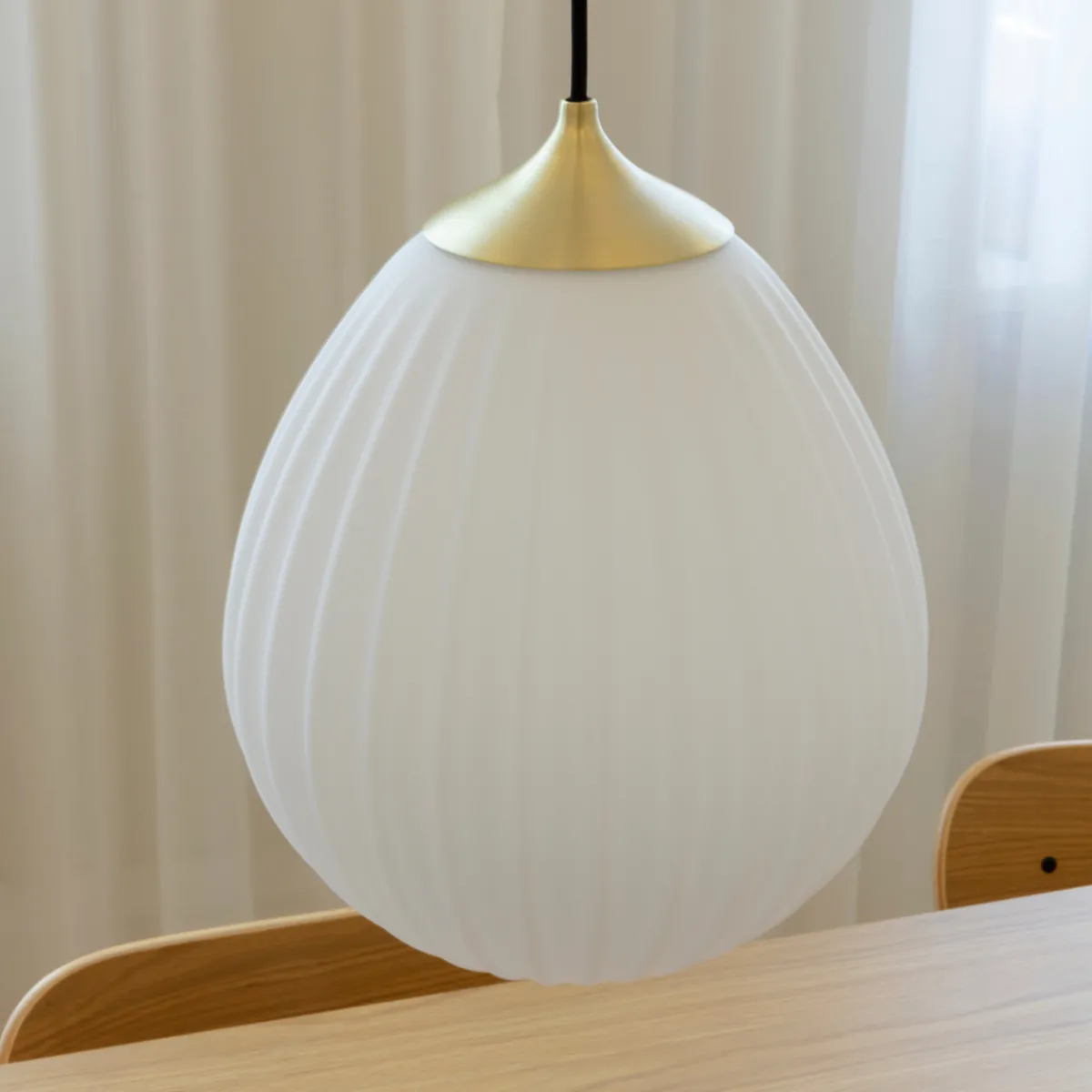 Around The World-lampeskjermen er laget av munnblåst opalglass med en form som ligner en luftballong – inspirert av universet til den kjente forfatteren Jules Verne. Dens melkehvite farge, fortryllende form og milde uttrykk gjør den til det perfekte tillegget til ethvert interiør.