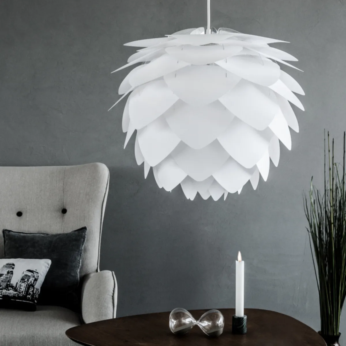 Silvia-lampeskjermen, med sine karakteristiske organiske, trekantede blad, er en moderne klassiker som passer inn i alle hjem. Klassisk hvit, moderne kobber og varm børstet messing er bare noen få av de nøye utvalgte fargene som Silvia er tilgjengelig i. Silvia kommer i to forskjellige størrelser og vil alltid lyse opp hjemmet ditt uansett farge.