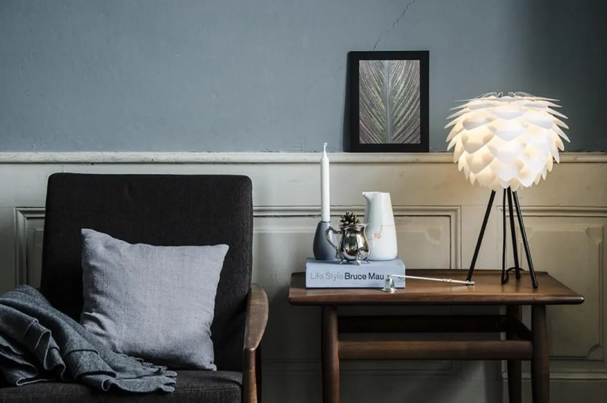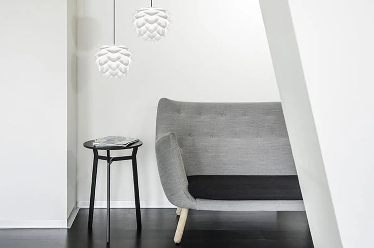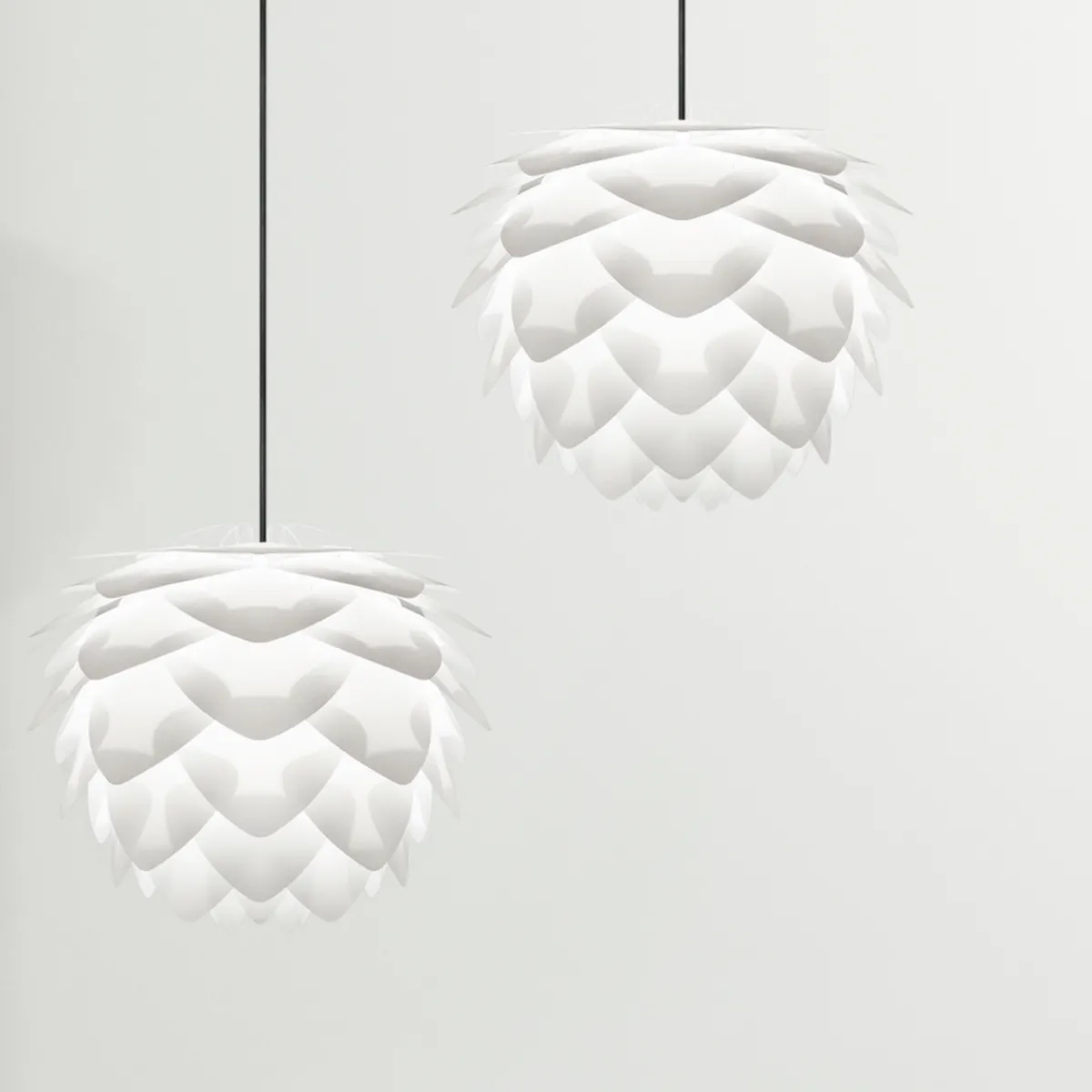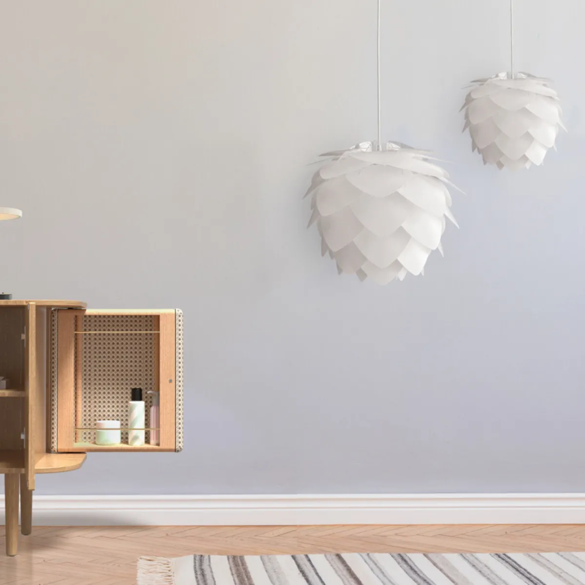 Silvia-takpendelen i hvit, er en stilfull designlampe fra Umage, som egner seg like godt som pendel, bordlampe og gulvlampe.